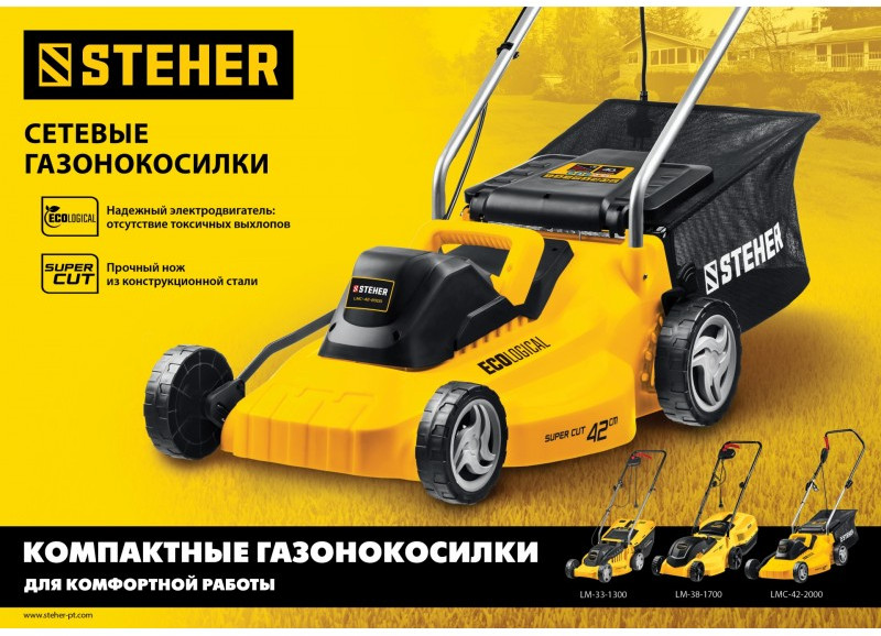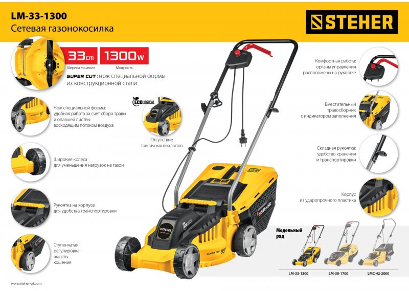 Газонокосилка сетевая STEHER LM-33-1300 1300 Вт, ш/с 33 см