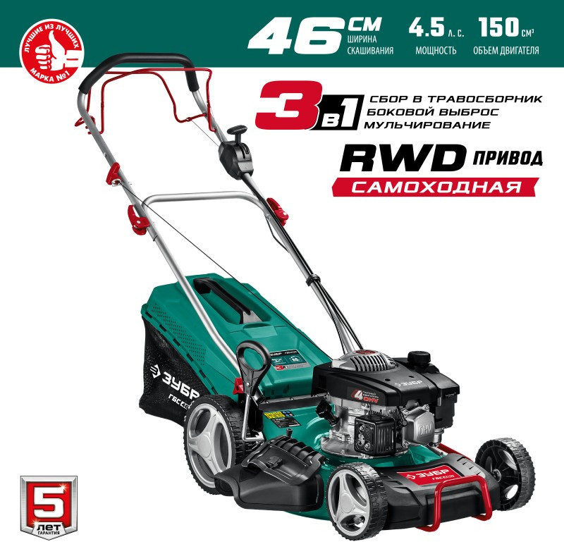 Самоходная газонокосилка бензиновая Зубр ГБС-460 460 мм 4.5 л.с.
