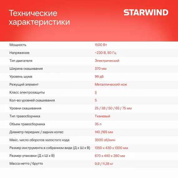 Газонокосилка роторная STARWIND ELM-1500 1500Вт