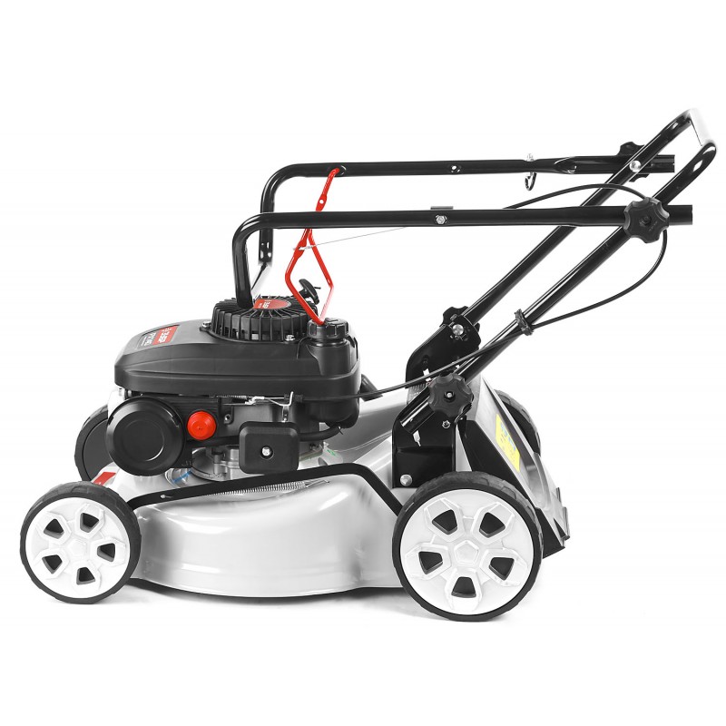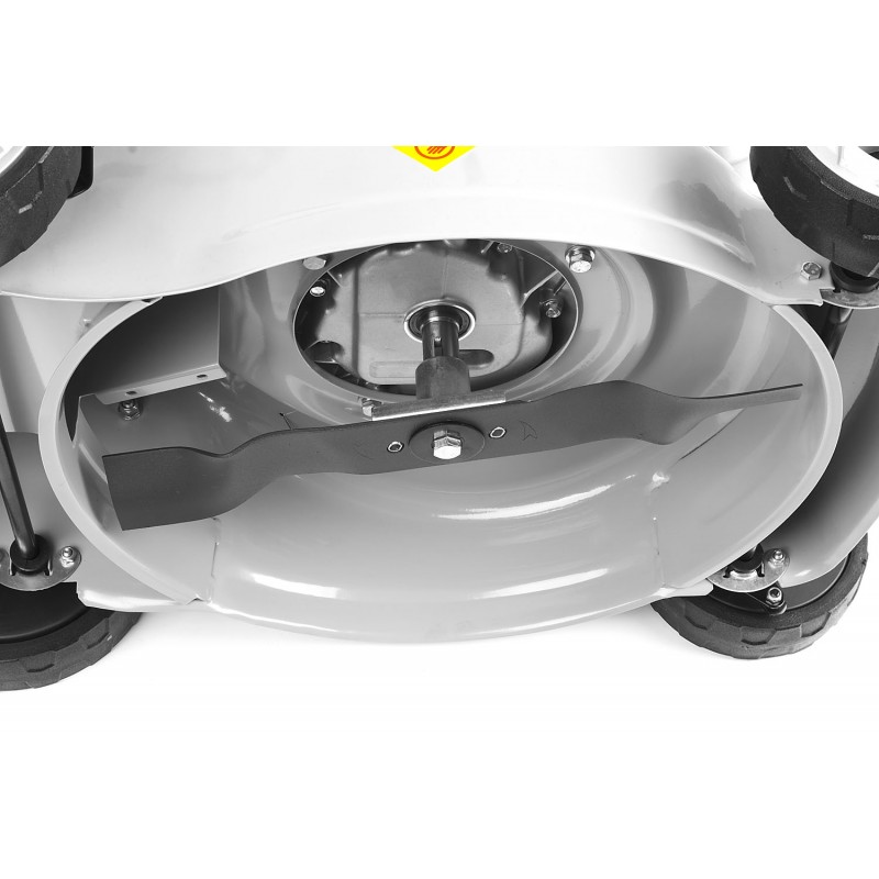 - Колеса увеличенного диаметра на подшипниках и эргономичная рукоятка облегчают перемещение косилки по газону