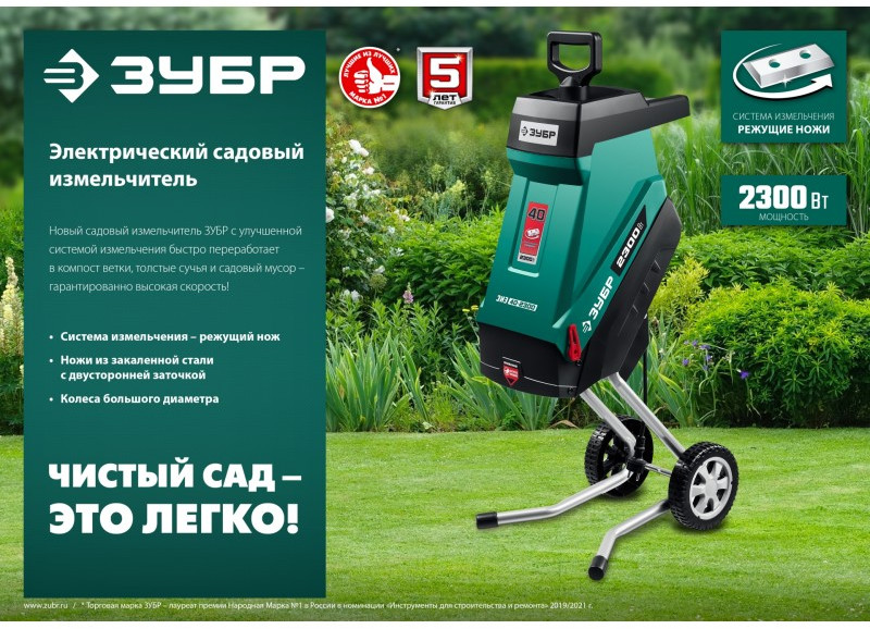 Электрический садовый измельчитель Зубр ЗИЭ-40-2300 2300 Вт