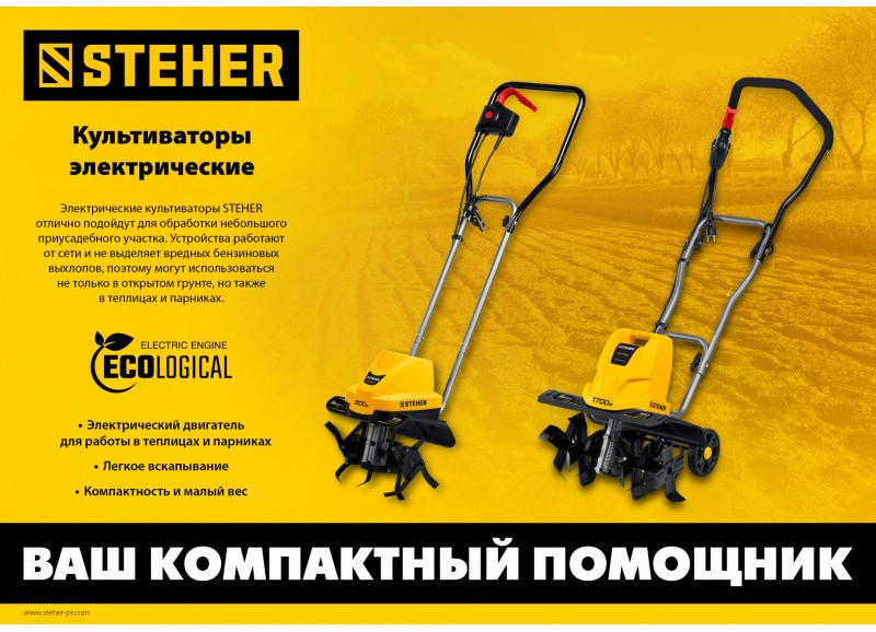 Лёгкий культиватор с синхронным двигателем мощностью 800 Вт используется для рыхления и культивации почвы в парниках и теплицах. Оснащен металлическими фрезами с шириной захвата 30 см и обрабатывает почву на глубину до 20 см.