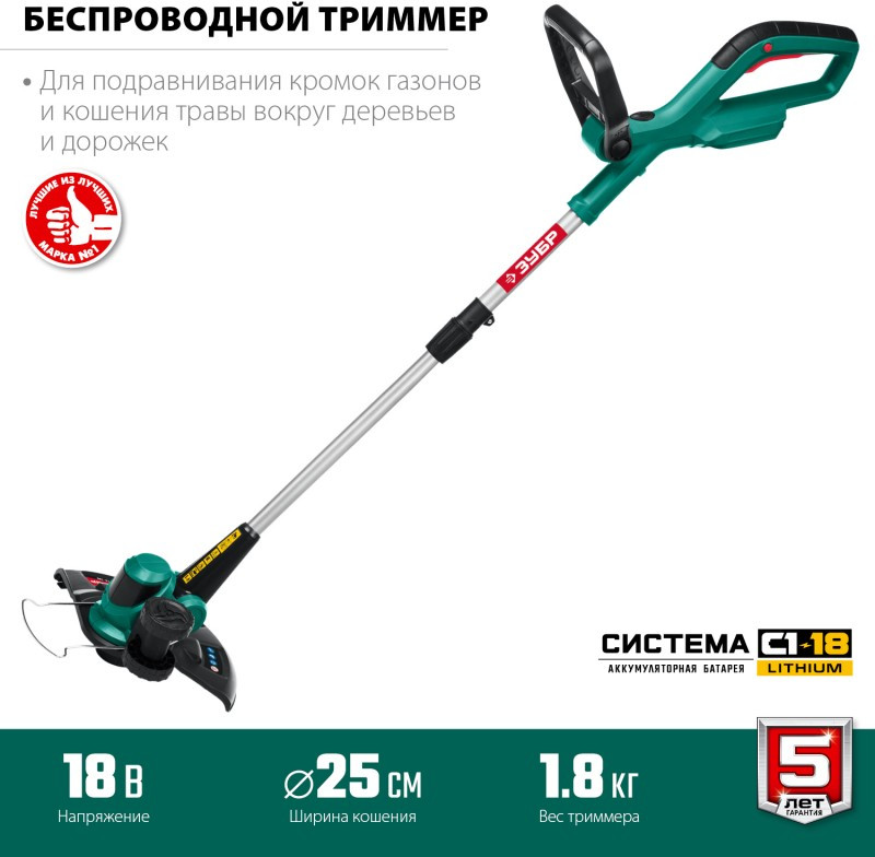 Аккумуляторный триммер Зубр ТА-185 18В, без АКБ