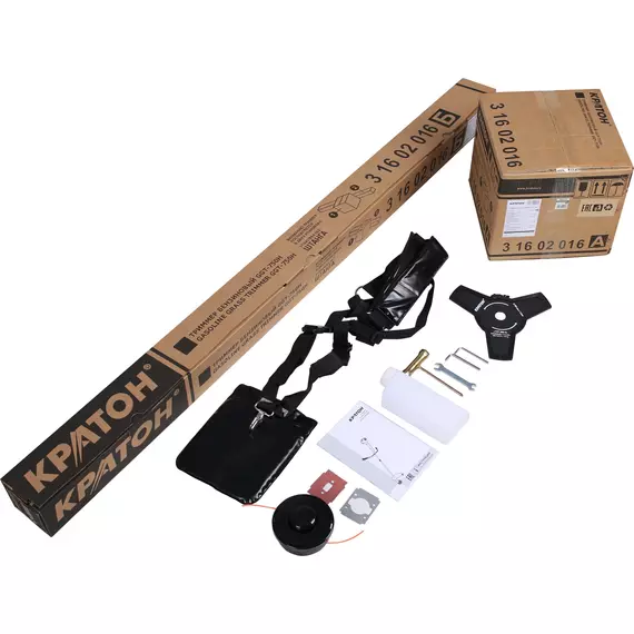 | Комплект поставки | Триммер, штанга, защитный кожух, рукоятка: 2 шт.; ремень одноплечный, режущая головка с кордом, режущий нож, емкость для топливной смеси, комплект крепежных изделий, прокладки, ключ универсальный, ключ рожковый, ключ шестигранный: 2 шт.; инструкция по эксплуатации, коробка картонная: 2 шт. |
