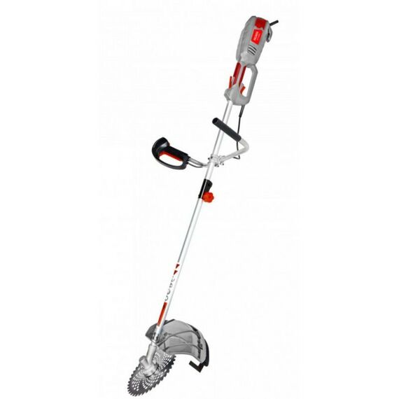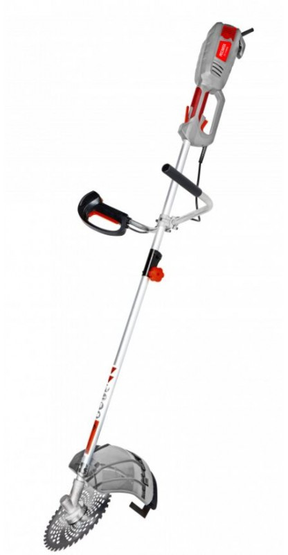 - Двигатель с воздушным охлаждением имеет мощность 1.5 кВт. Из отличительных особенностей модели стоит выделить разборную штангу, которая облегчает транспортировку и хранение инструмента. Также в комплект входит 3-х лопастной нож, позволяющий скашивать густую поросль