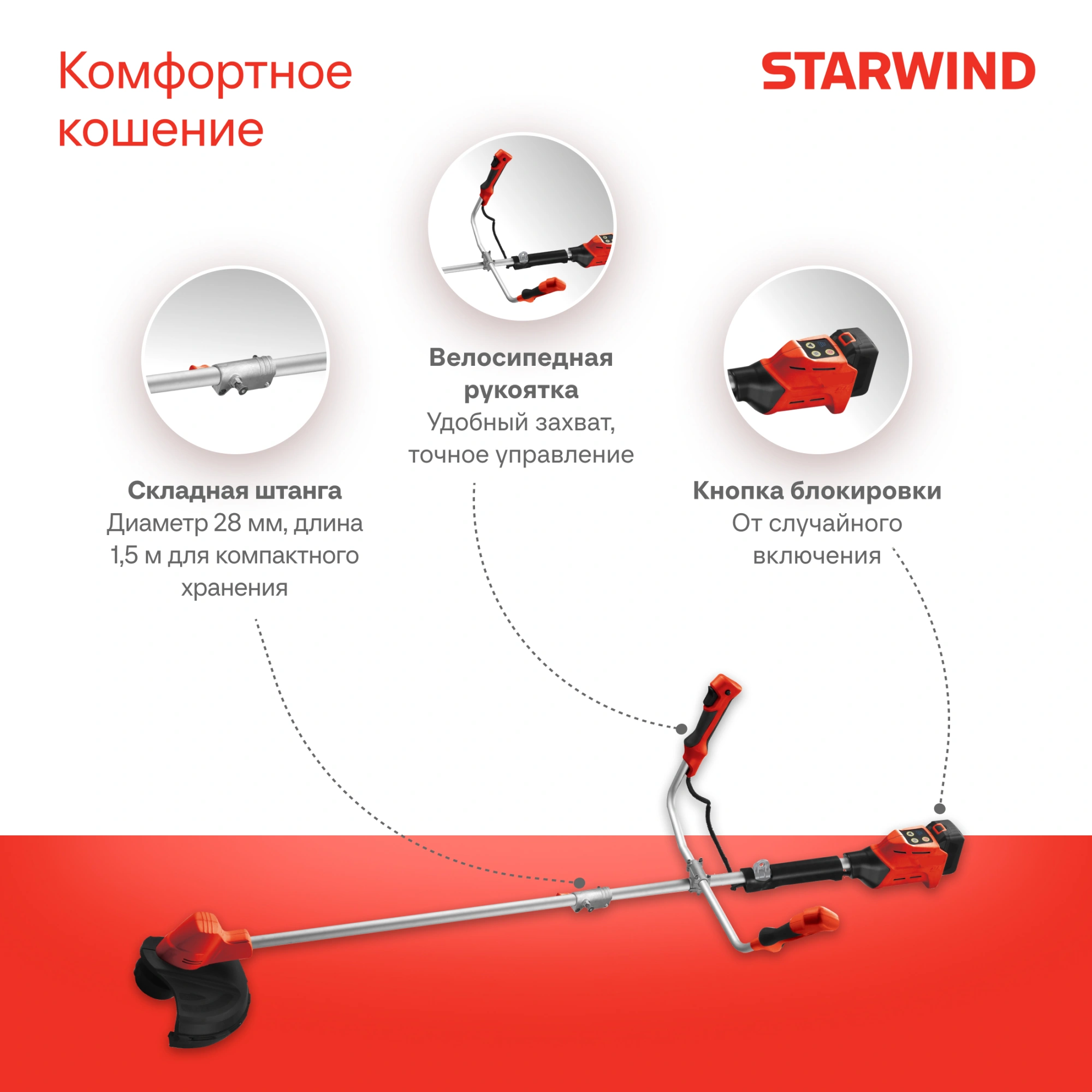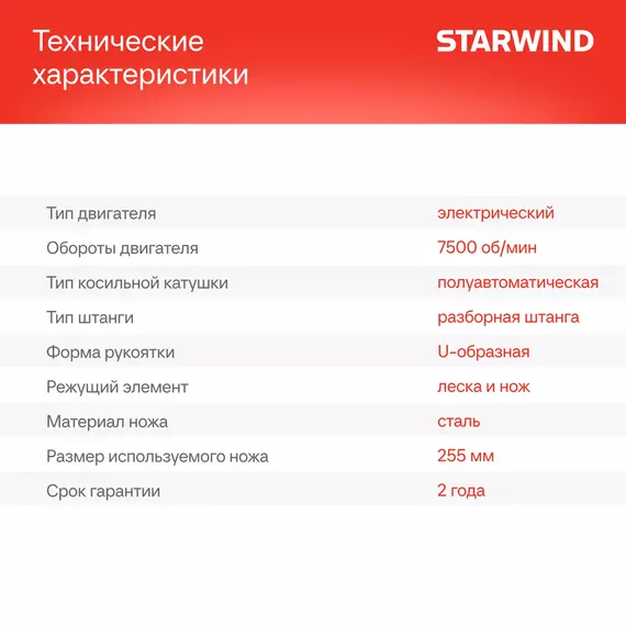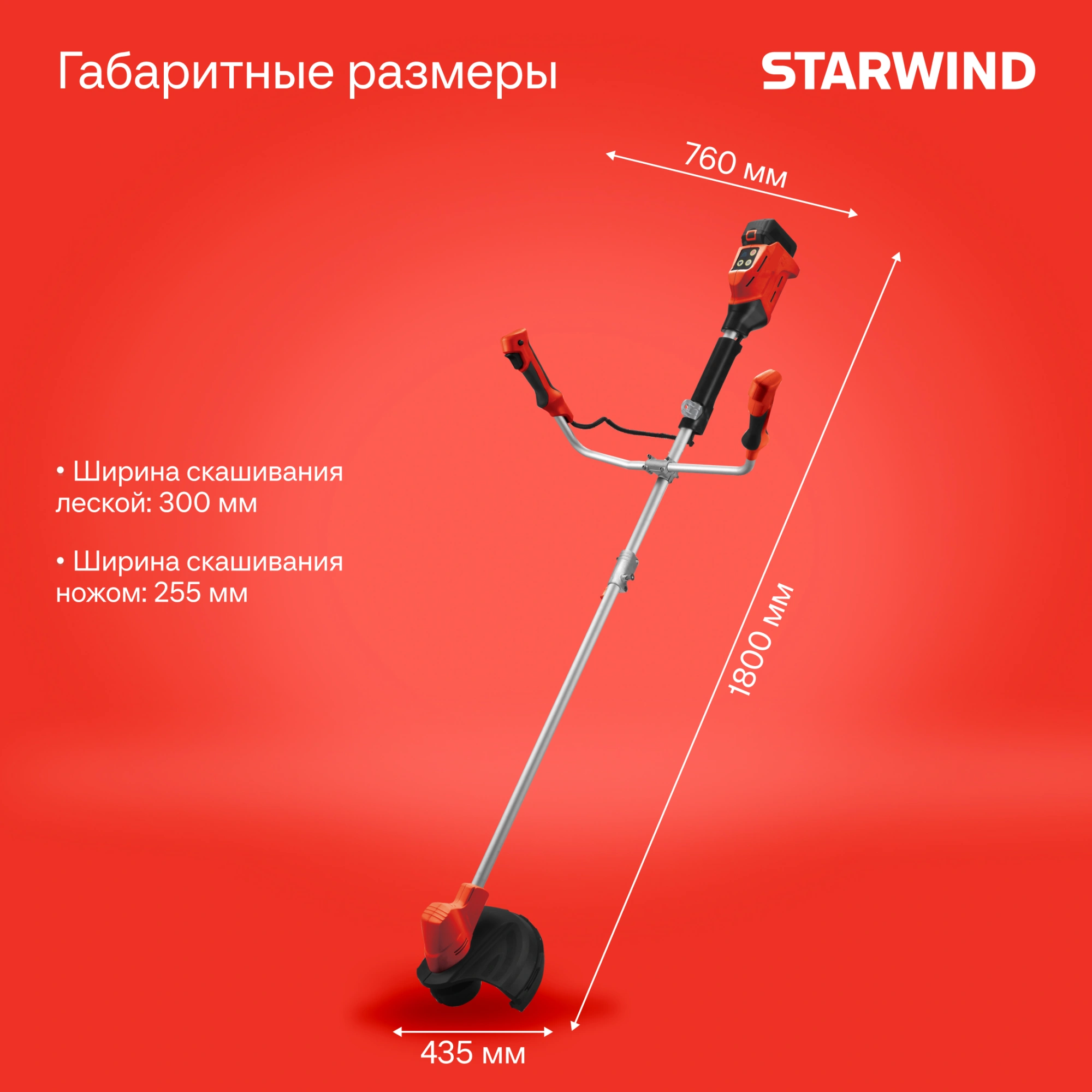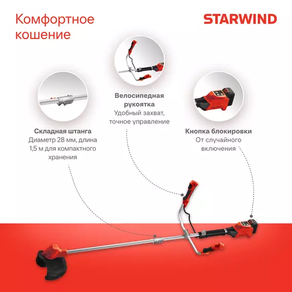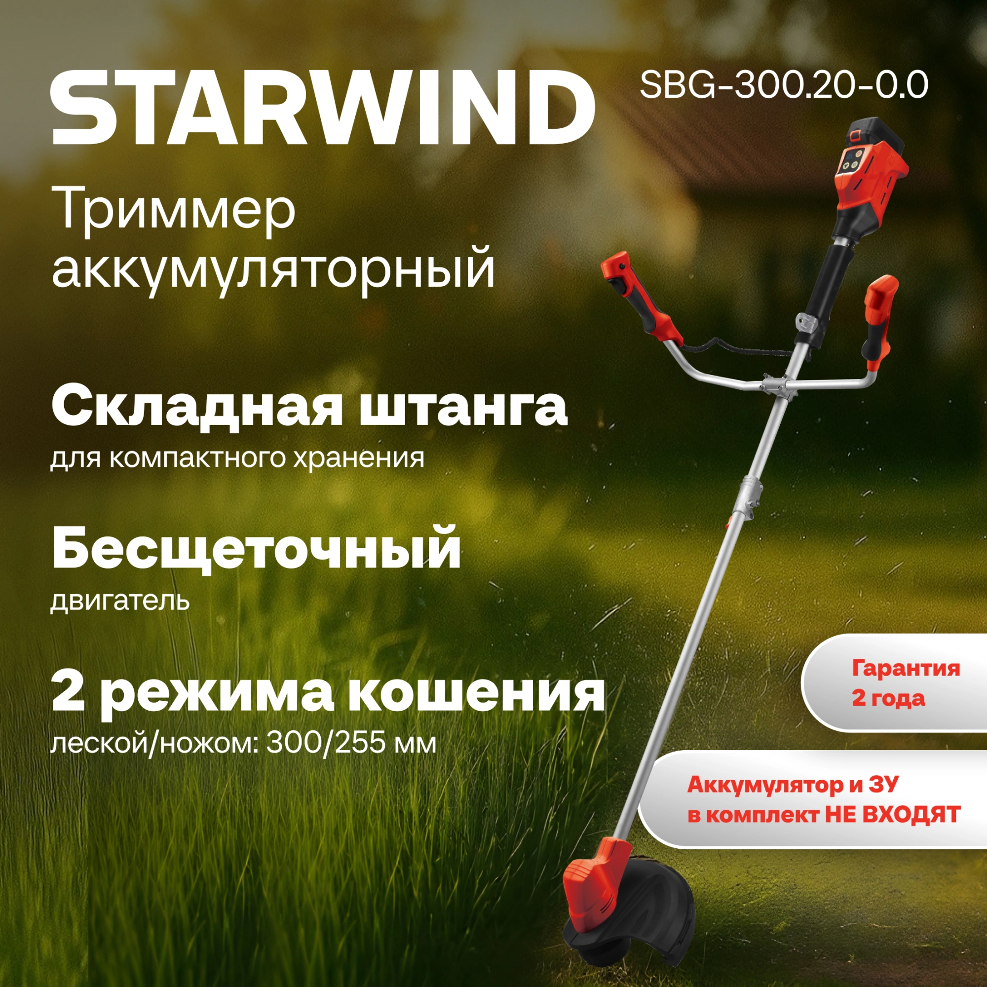 Триммер электрический STARWIND SBG-300.20-0.0 аккум. разбор.штан. реж.эл.:леска/нож