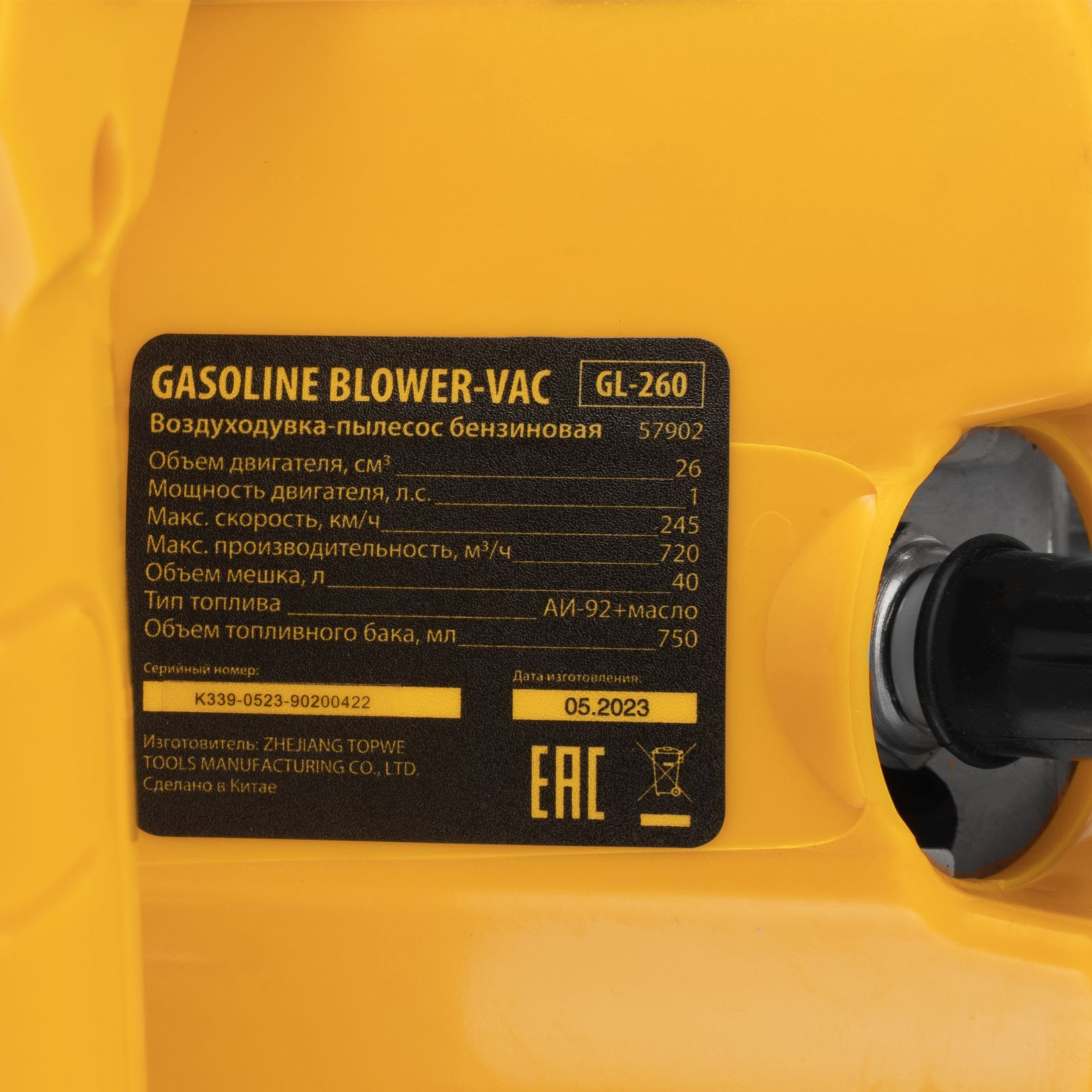 Воздуходувка-пылесос Denzel GL-260 желтый/черный [57902]