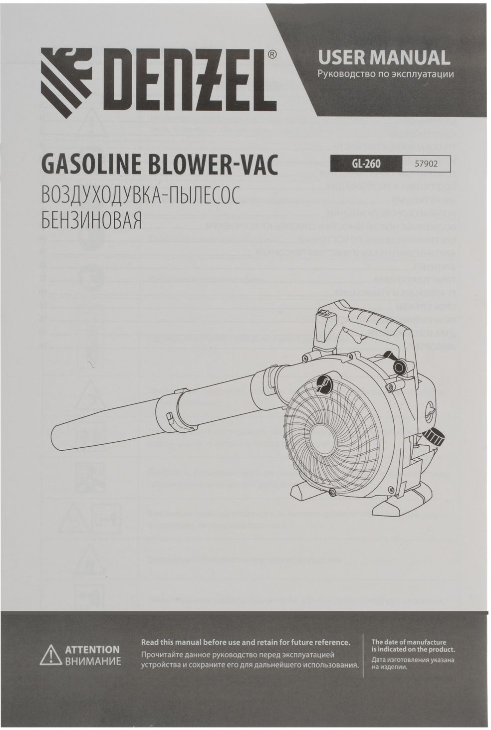 | Комплектация | Воздуходувка-пылесос бензиновая, труба напорная (из двух частей: тип А и тип В), труба всасывающая (из двух частей: тип С и тип D), труба разгрузочная, набор инструментов, дозатор для приготовления смеси, мешок для мусора с ремнем, руководство пользователя. |