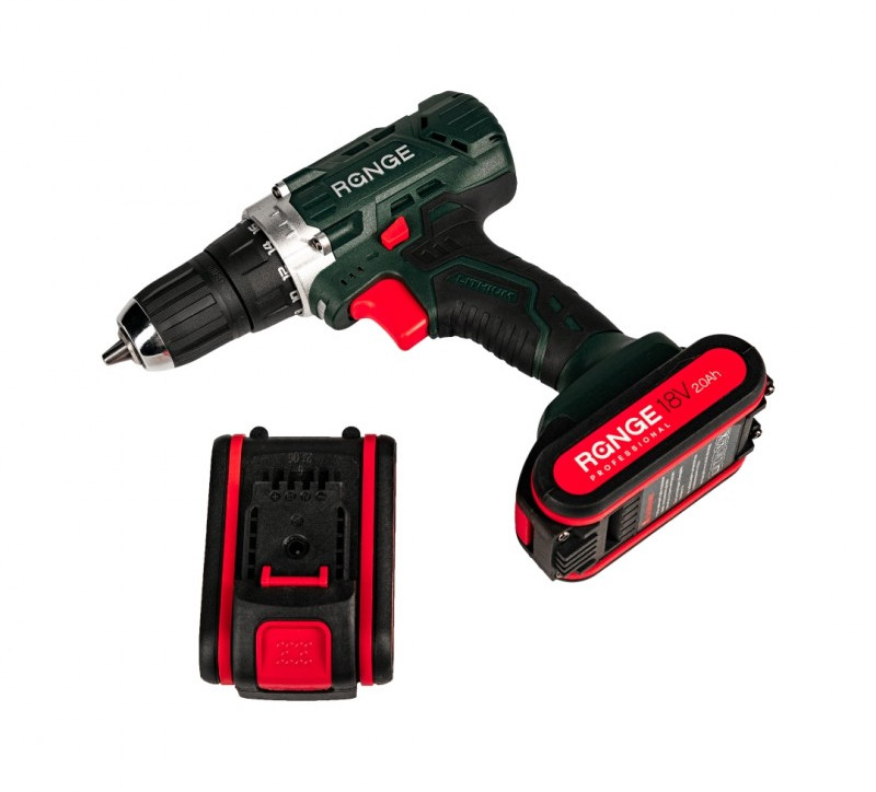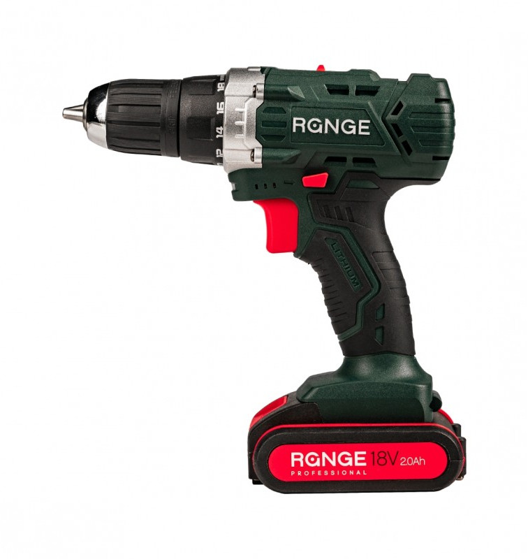 Аккумуляторная дрель RANGE RCD18/2.0-PRO 18В, 2 Li акк. 2.0Ач, 32Н, метал. патрон, кейс