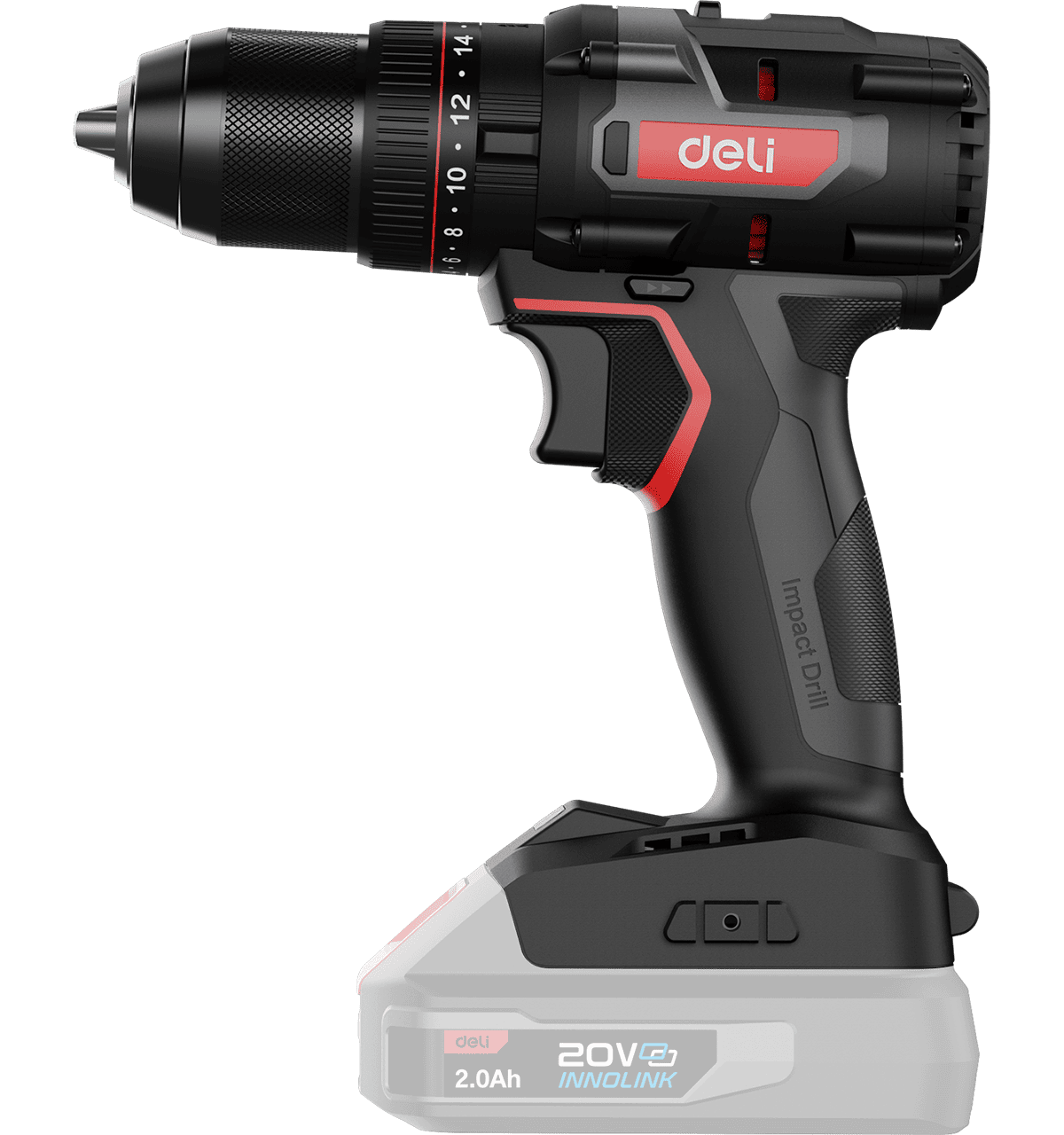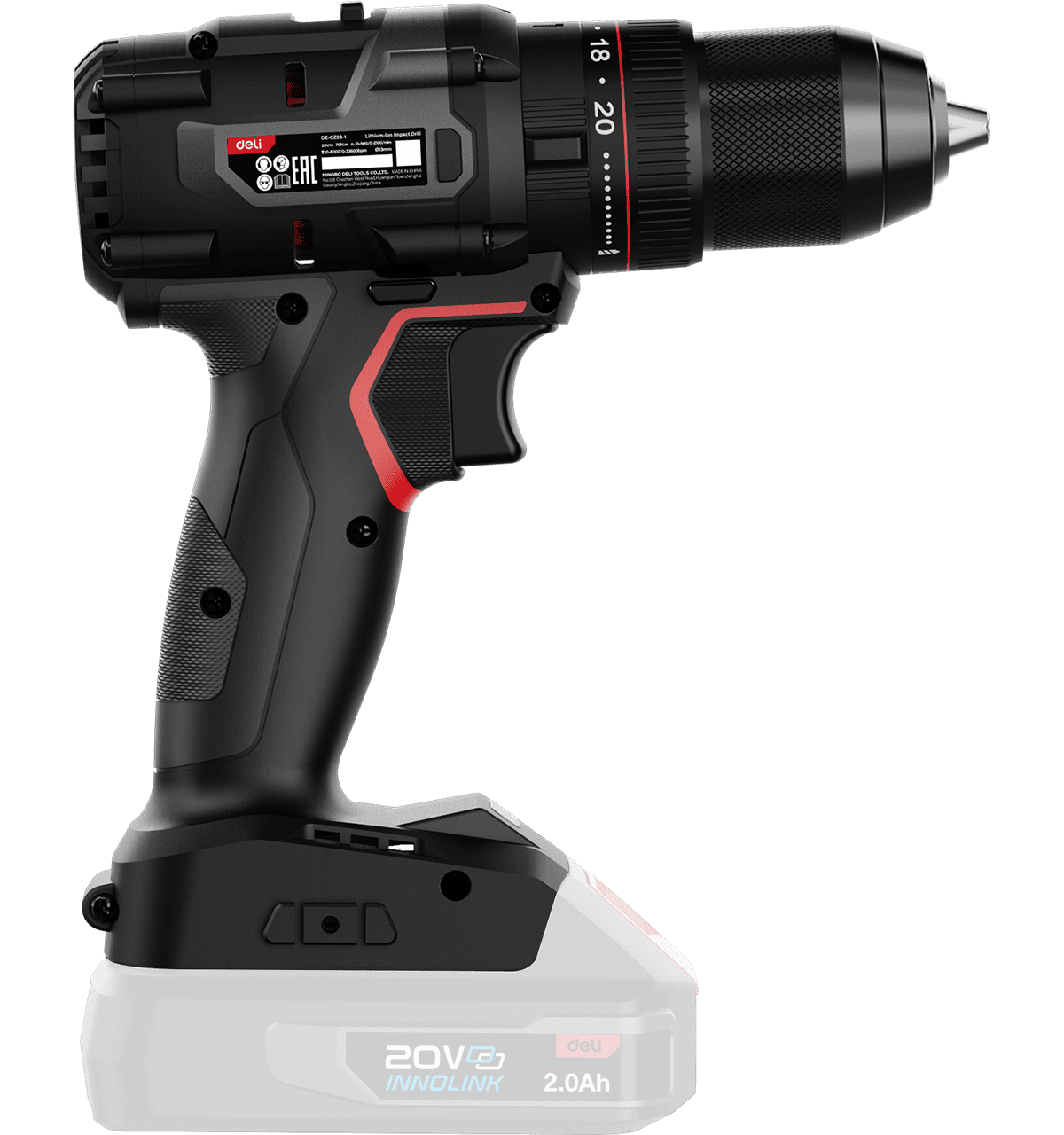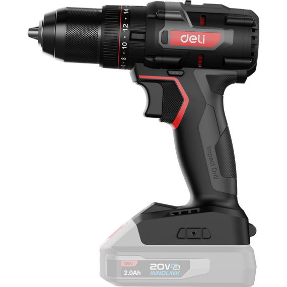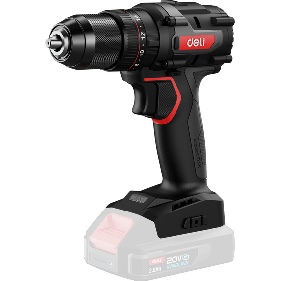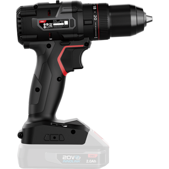 Дрель-шуруповерт аккумуляторная ударная Deli DE-CZ20-1 Без АКБ и ЗУ, 20В, 13мм, 70Нм, картон