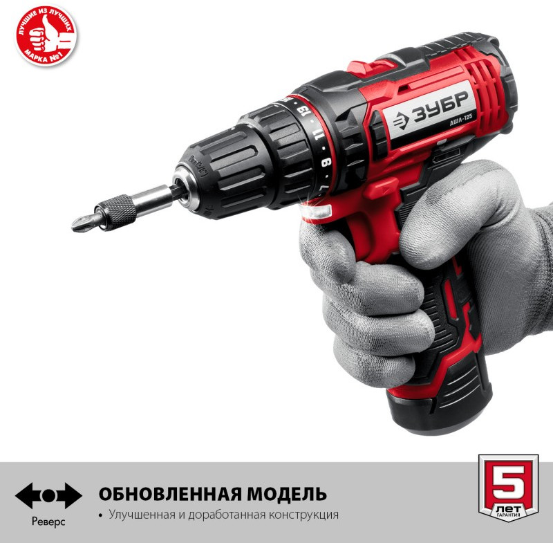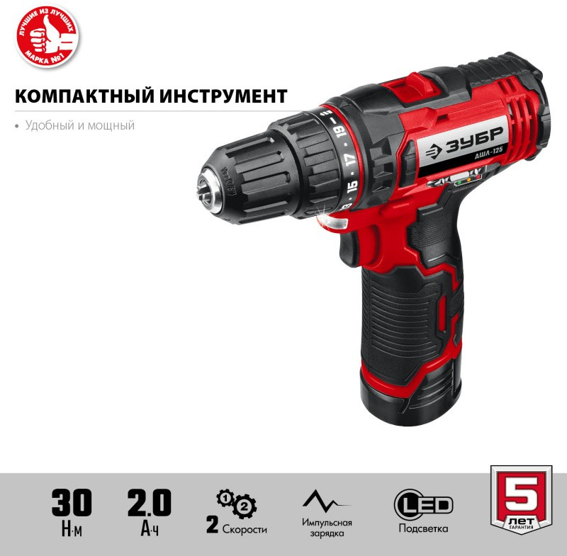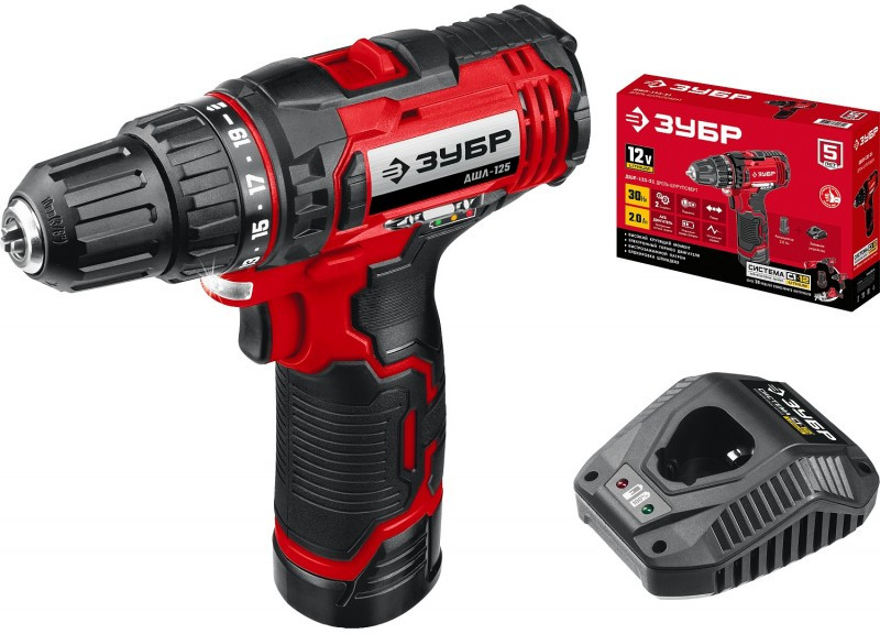 Дрель-шуруповерт Зубр ДШЛ-125-21 12В, 1 АКБ (2Ач), в коробке