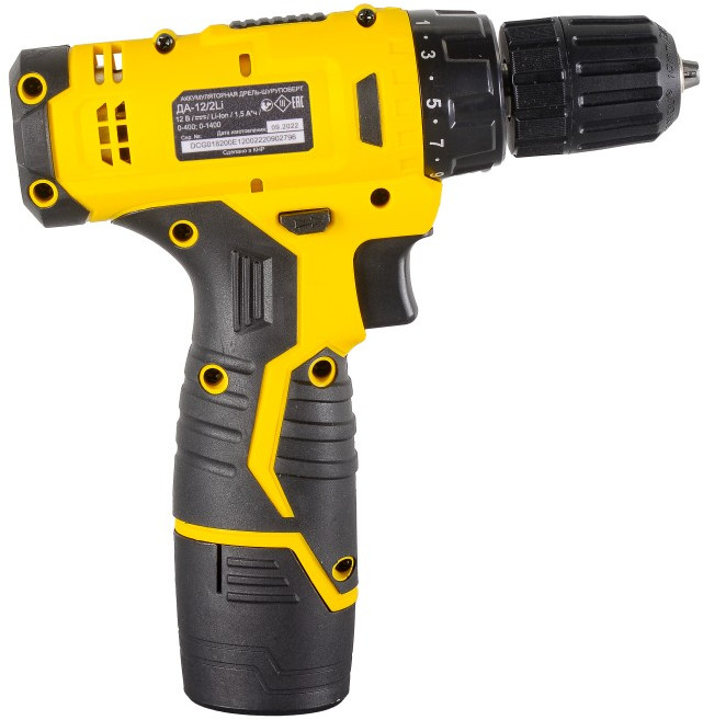 Дрель-шуруповерт аккумуляторная Eurolux ДА-12/2Li безударный, быстрозажимной, 0-400, 0-1400 об/мин, 25/13 Нм, 12В, 1.5 А*ч, 0.96 кг, кейс [72/14/38]