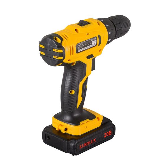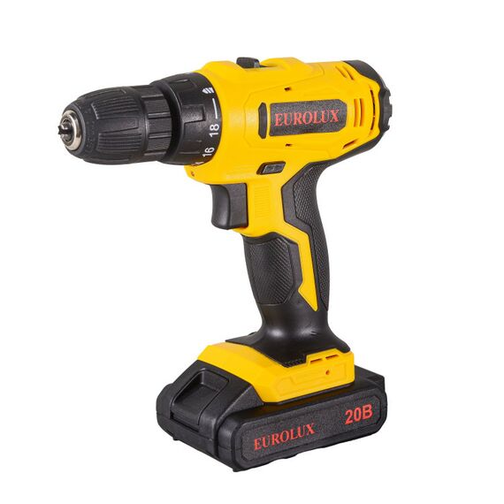 Аккумуляторная дрель-шуруповерт Eurolux ДА-20/2Li – ручной электроинструмент с регулируемым крутящим моментом, предназначенный для закручивания и откручивания шурупов, саморезов, винтов и других видов крепежных изделий, а также сверления отверстий в различных конструкционных материалах.