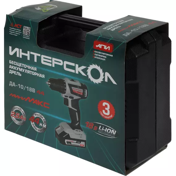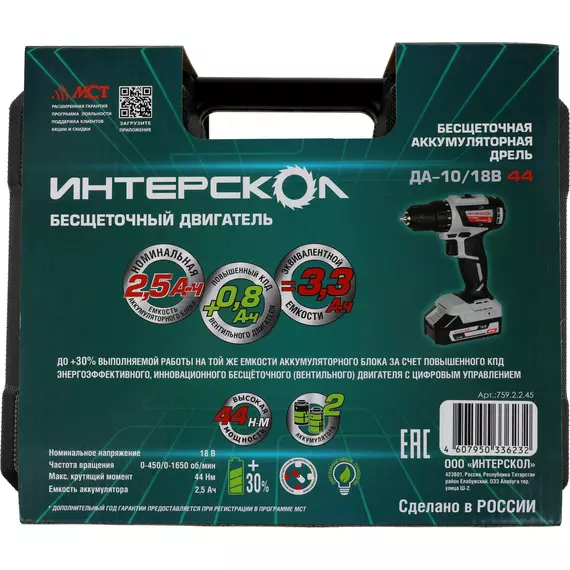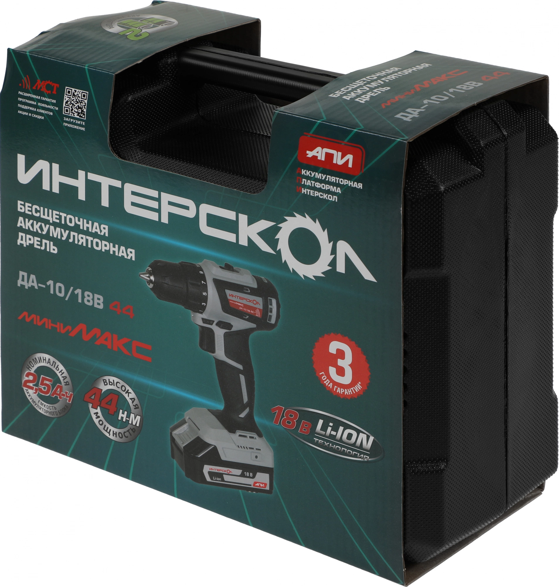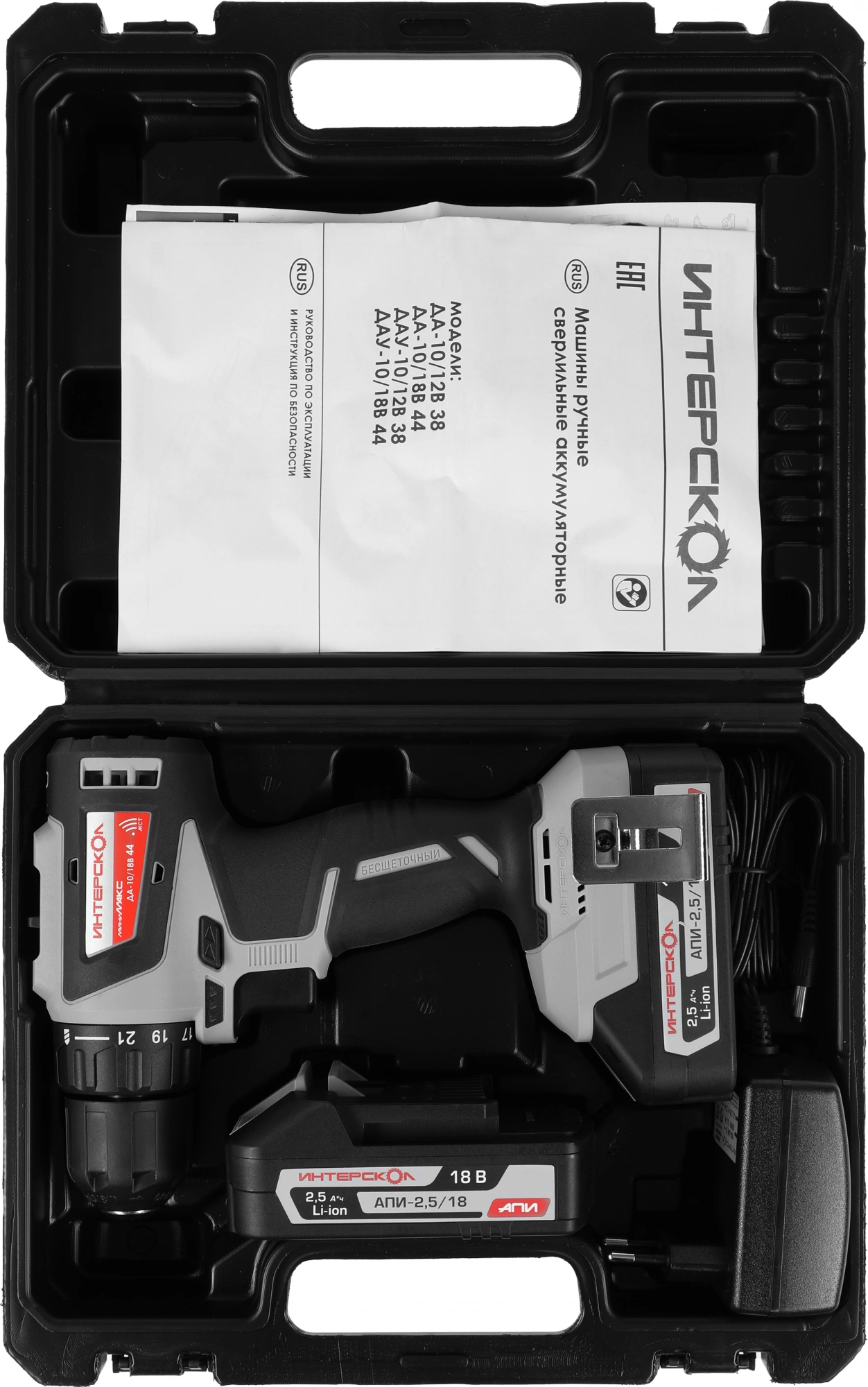 Дрель-шуруповерт аккумуляторный Интерскол ДА-10/18В 44 патрон быстрозажимной, кейс [759.2.2.45]