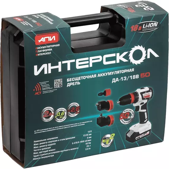 Дрель-шуруповерт аккумуляторный Интерскол ДА-13/18В 50 патрон быстрозажимной, кейс [776.2.2.79]