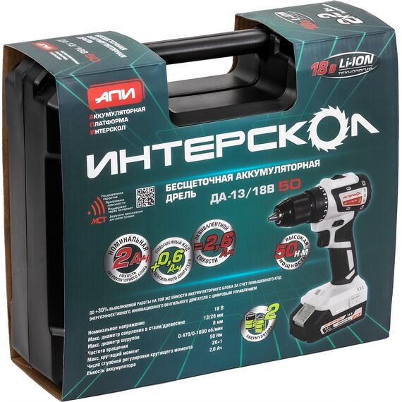 Дрель-шуруповерт Интерскол ДАУ-13/18В 50 кейс [802.2.2.70]