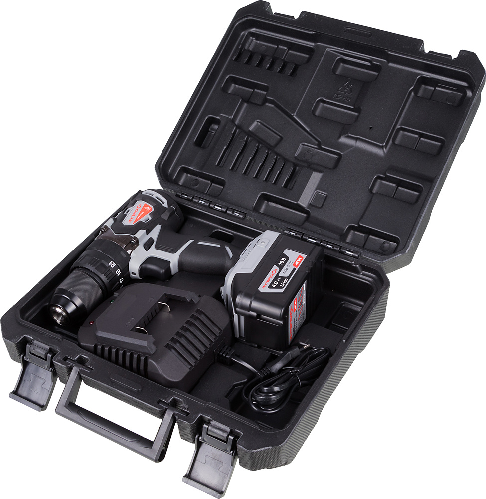 | Комплект поставки | Дрель-шуруповерт, аккумуляторный блок АПИ, 1 шт. .4 Ач., часовое моноблочное зарядное устройство, скоба, кейс пластмассовый, руководство по эксплуатации и инструкция по безопасности, гарантийный талон. |