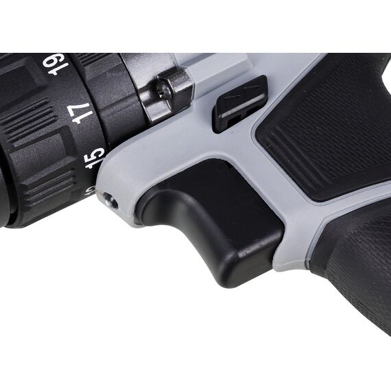 | Особенности | Редуктор с механическим переключением скоростей; управление скоростью вращения нажатием на курок; БЗП патрон с фиксацией; удобная обрезиненная рукоятка; скоба для подвешивания на ремень; мощная подсветка рабочей зоны, автоматически подключающаяся при недостаточном уровне освещенности. |