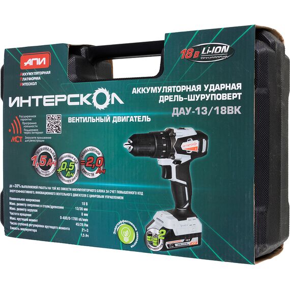 Дрель-шуруповерт Интерскол ДАУ-13/18ВК кейс [573.1.2.70]