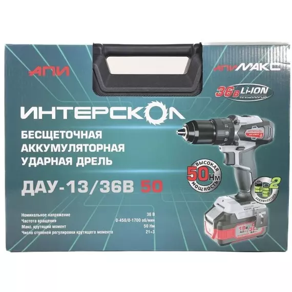 Дрель-шуруповерт аккумуляторный Интерскол ДАУ-13/36В 50 патрон быстрозажимной, кейс [850.2.2.70]