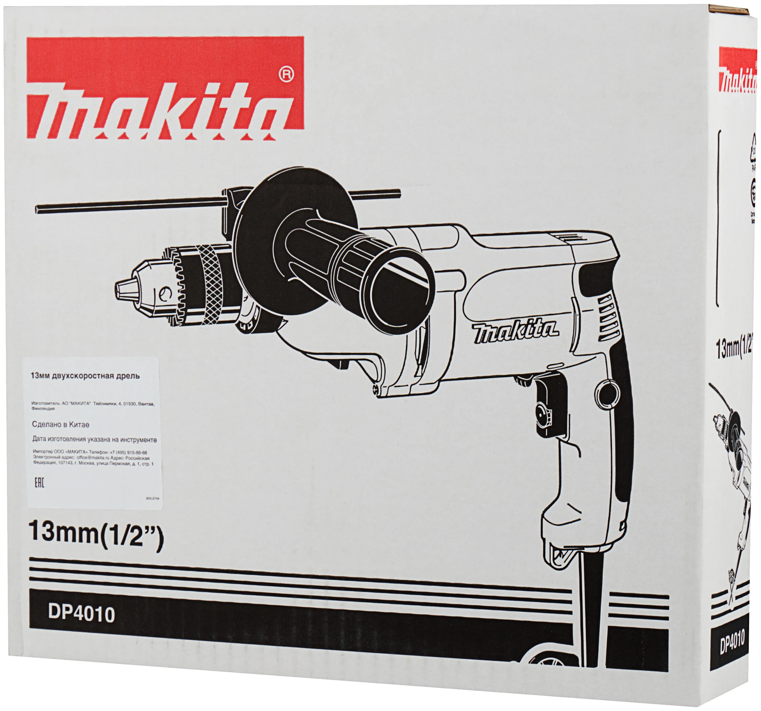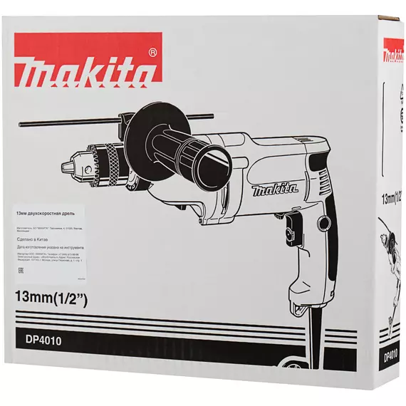 Дрель Makita DP4010 720 Вт, 2900 об/мин, 13 мм, 2 скорости, регулятор, ключ