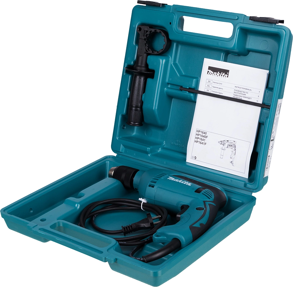 Дрель ударная Makita HP1641K 680Вт, быстрозажимной патрон, реверс, кейс