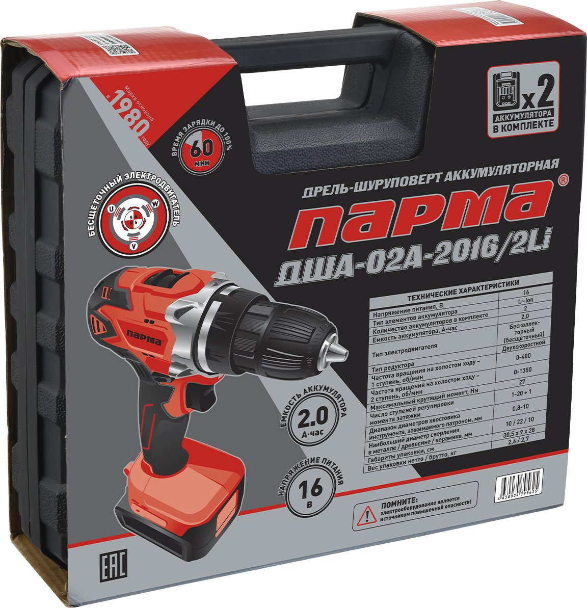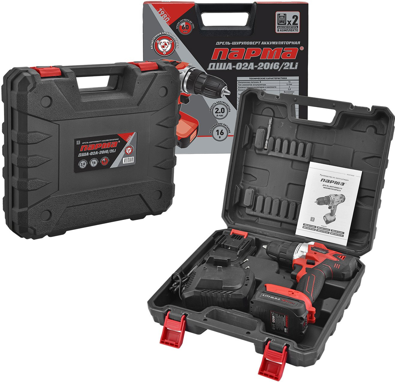 Дрель-шуруповерт Парма ДША-02А-2016/2Li кейс [02.021.00010]