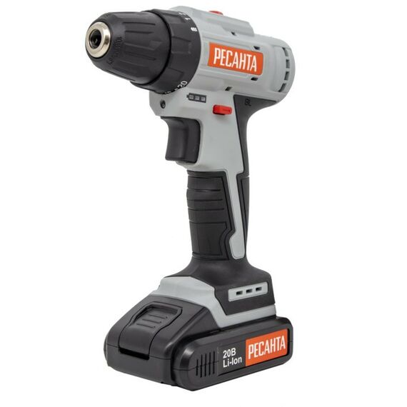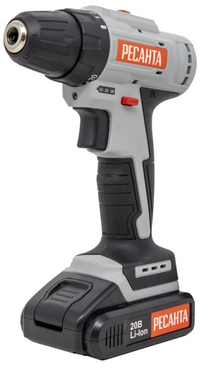 Дрель-шуруповерт аккумуляторная РЕСАНТА ДА-20-2ЛК-Б 2.0 А/ч, бесщеточный двигатель