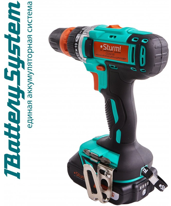 Дрель-шуруповерт аккумуляторная Sturm! CD3618T 18В, 2.0Ач, 30Нм, 1BatterySystem