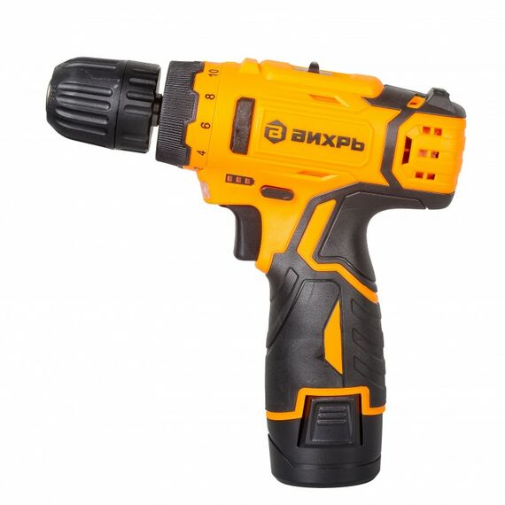 Дрель-шуруповерт аккумуляторная Вихрь ДА-12Л-2КН безударный, быстрозажимной, 400/1400 об/мин, 30/15 Нм, 12В, 2 А*ч, 3.3 кг, кейс с набором инструментов