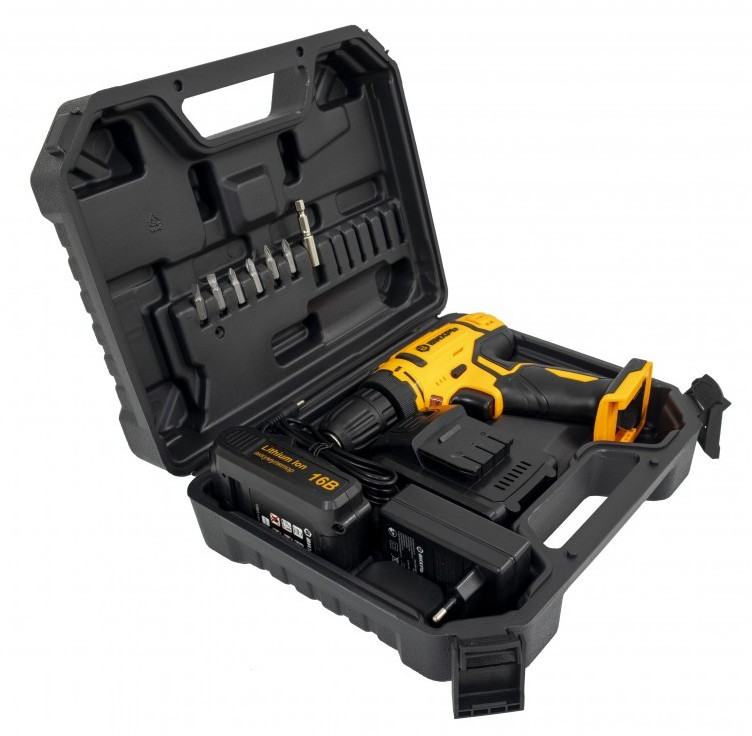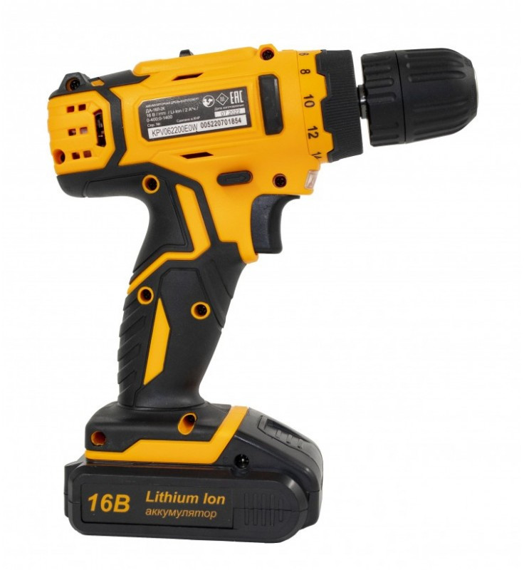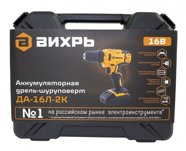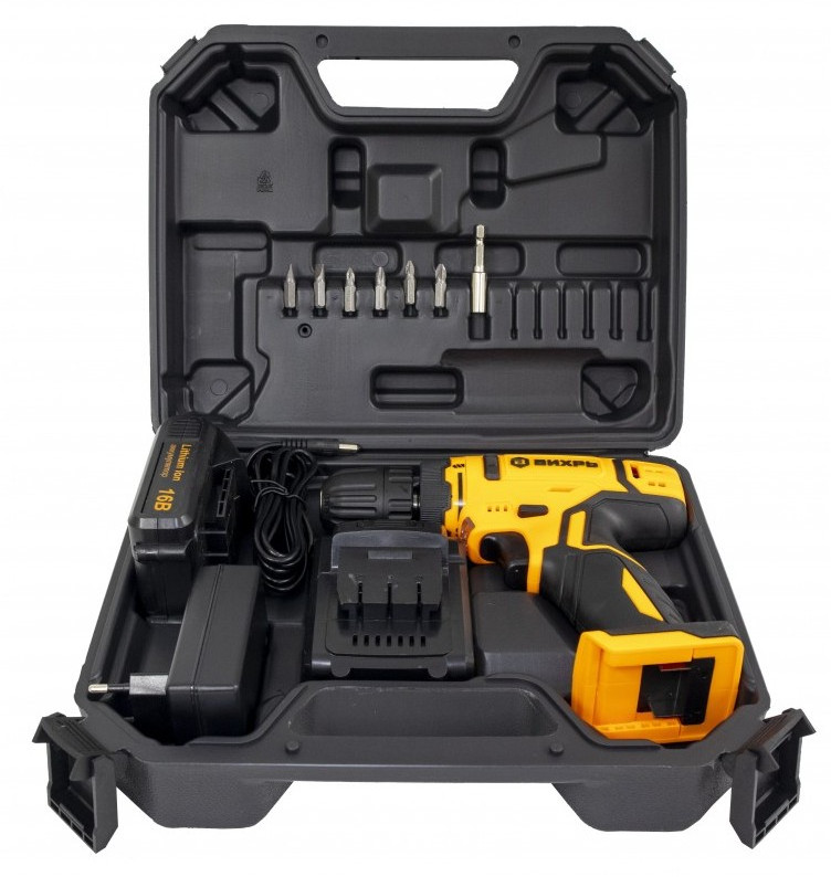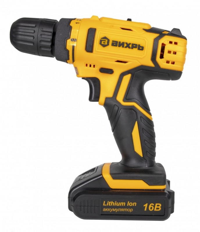 Дрель-шуруповерт аккумуляторная Вихрь ДА-16Л-2К безударный, быстрозажимной, 400/1400 об/мин, 42/20 Нм, 16 В, 2 А*ч, 1.3 кг, кейс [72/14/32]