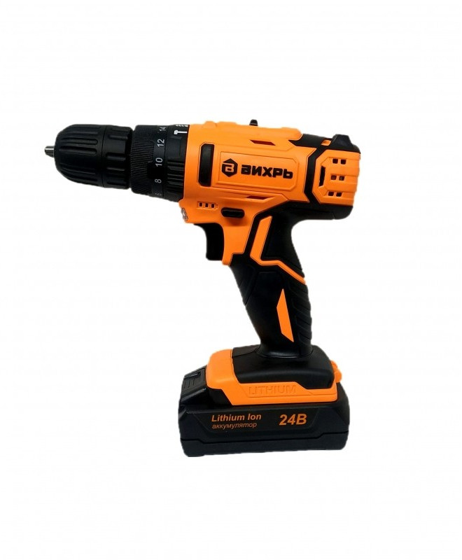 Дрель-шуруповерт аккумуляторная ударная Вихрь ДА-24Л-2кУ 24 В, 40 Нм, 350/1350 об/мин, 2x2Ач, 1.35, кейс