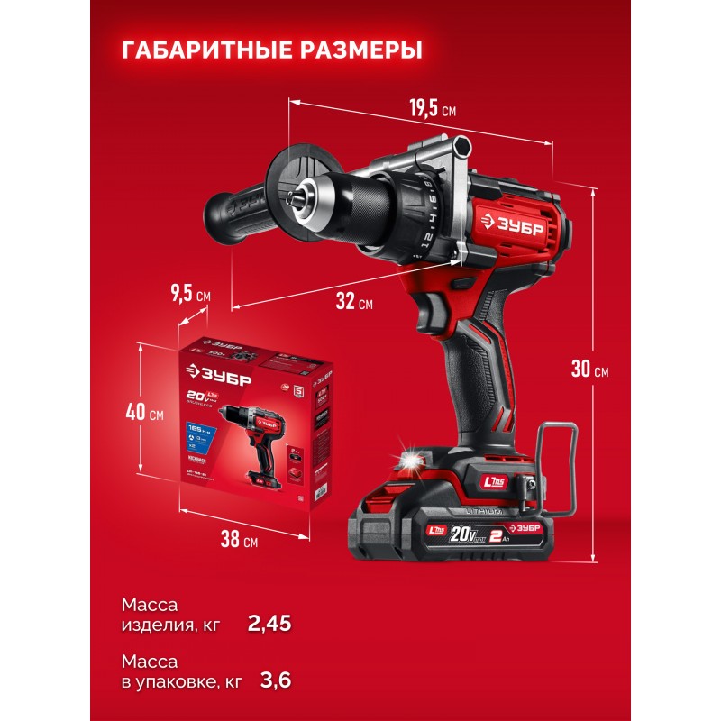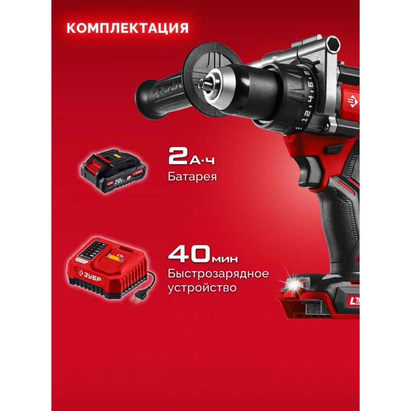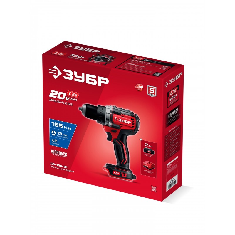 Бесщеточная дрель-шуруповерт Зубр ДБ-165-21 20 В, 165 Н·м, 1 АКБ LMS (2 А·ч)
