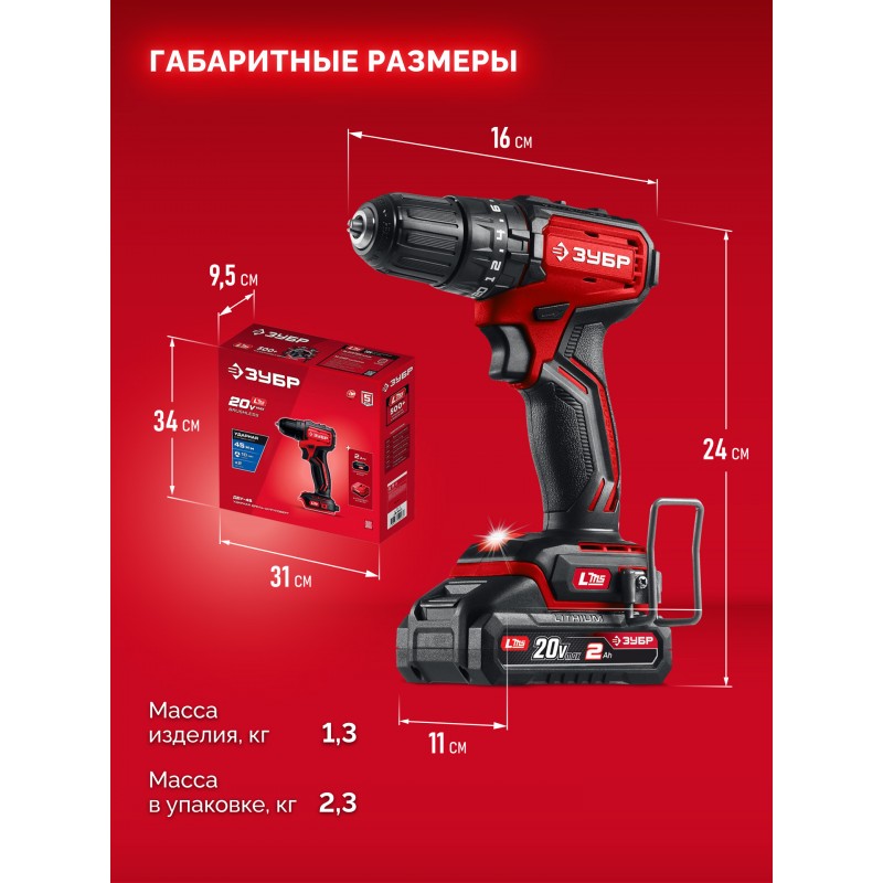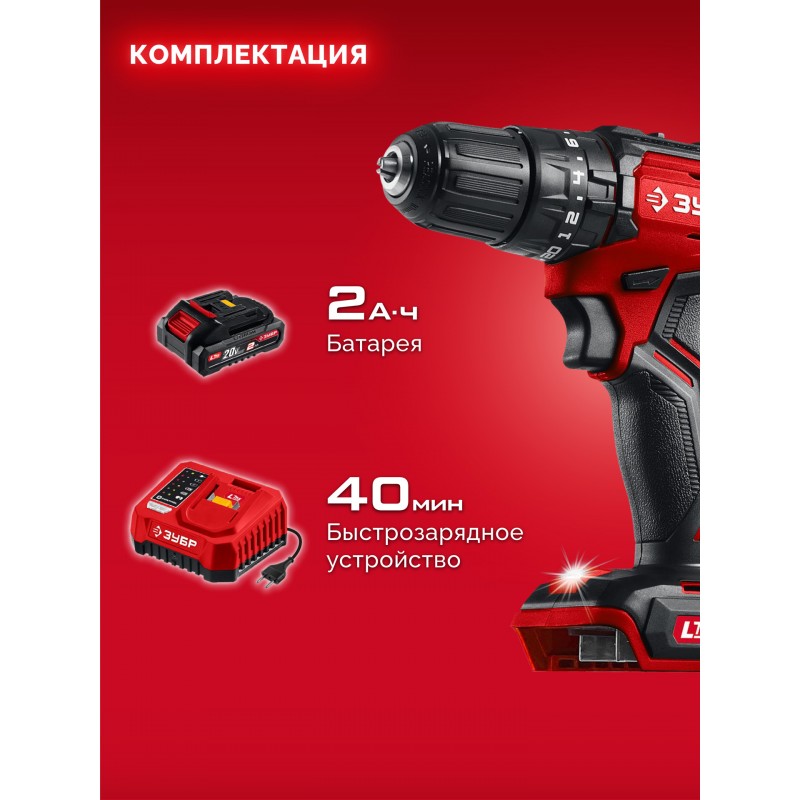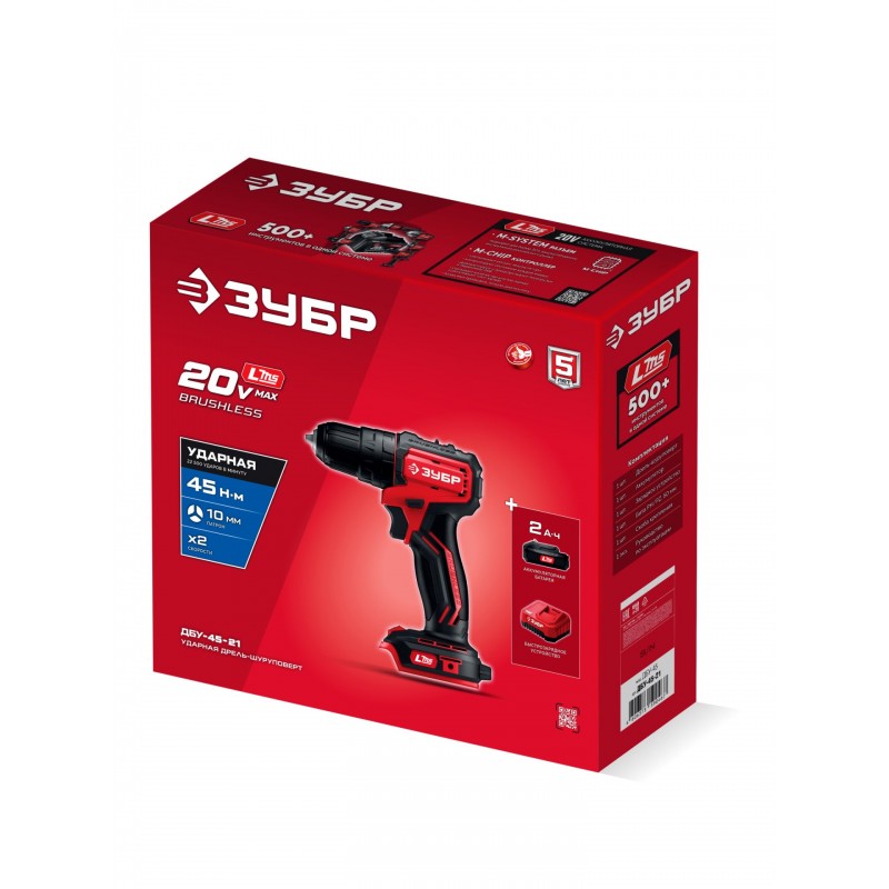 Бесщеточная ударная дрель-шуруповерт Зубр ДБУ-45-21 ЗУБР 20 В, 45 Н·м, 1 АКБ LMS (2 А·ч)