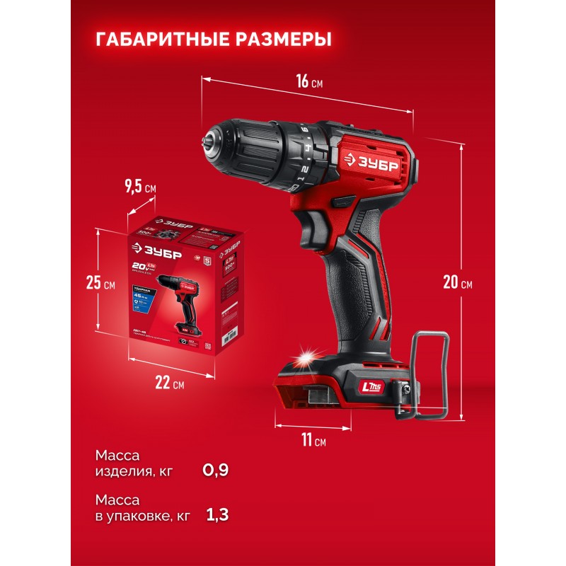 Бесщеточная ударная дрель-шуруповерт Зубр ДБУ-45 20 В, 45 Н·м, без АКБ (LMS)