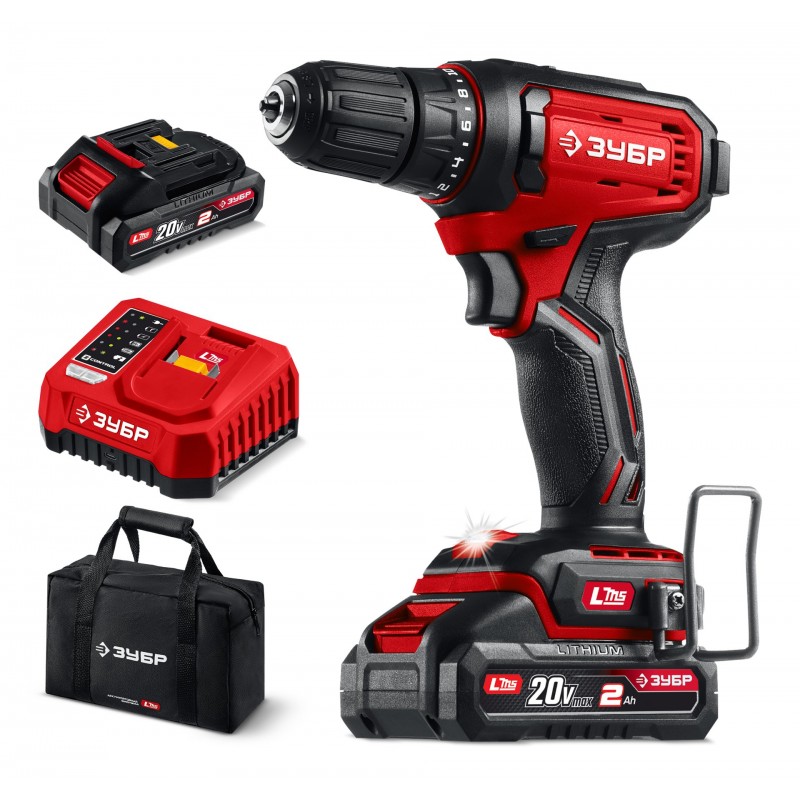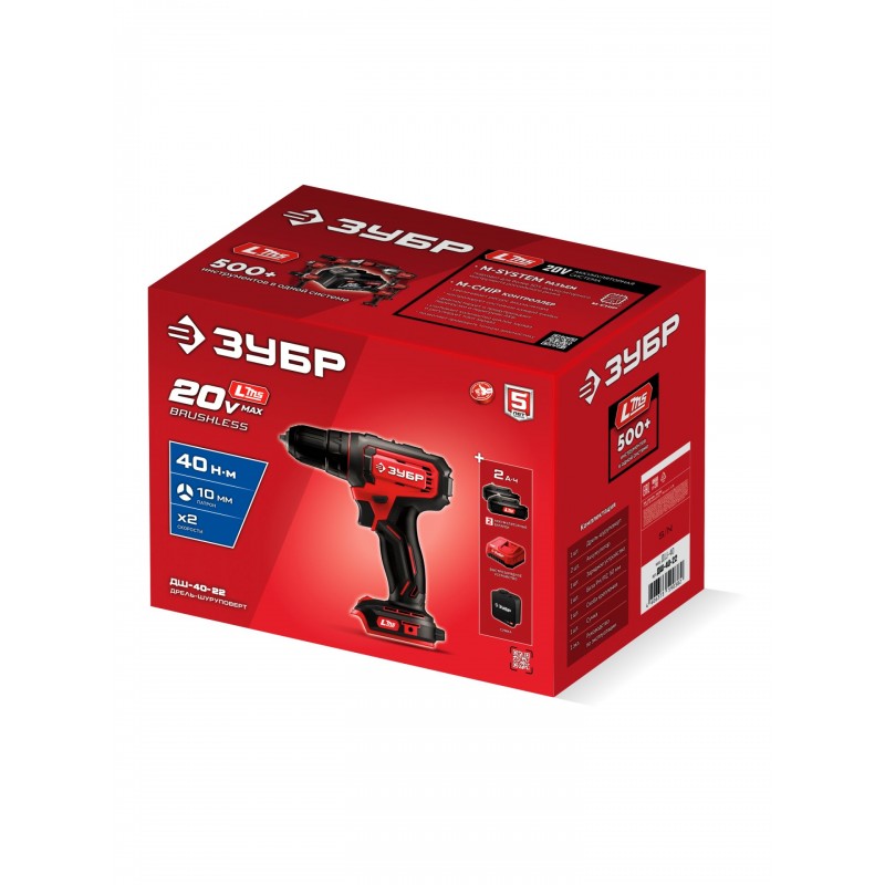 Дрель-шуруповерт Зубр ДШ-40-22 20 В, 40 Н·м, 2 АКБ LMS (2 А·ч), сумка