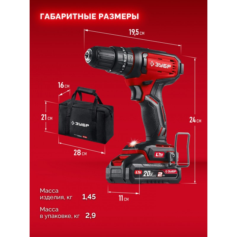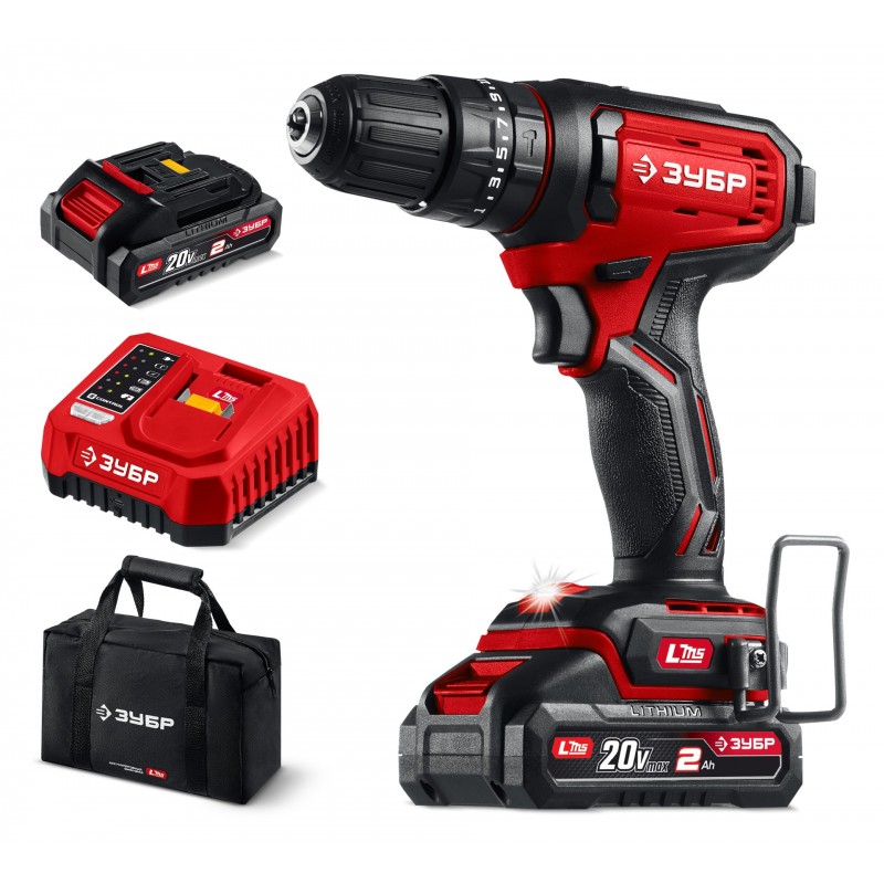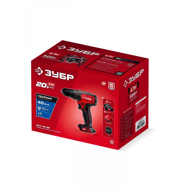 Ударная дрель-шуруповерт Зубр ДШУ-40-22 20 В, 40 Н·м, 2 АКБ LMS (2 А·ч), сумка