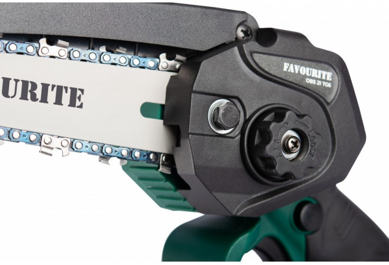 Цепная аккумуляторная пила FAVOURITE 21 В OBS 21 TG6 подходит для обрезки и распиливания небольших веток и сучков, идеальный инструмент для садовода, которому нужна небольшая пила для обрезки. Компактный размер данной пилы позволяет работать ею одной рукой, таким образом выполняя обрезку высоких деревьев. Защита рукоятки и простая система замены и натяжения цепи делают работу легкой и безопасной