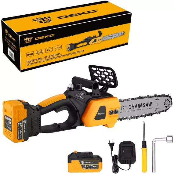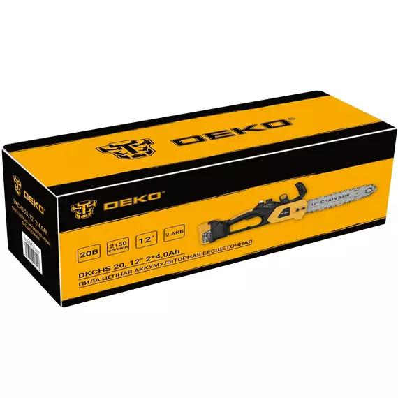 Цепная пила аккумуляторная Deko DKCHS 20 дл.шины 12" (30cm) 2 аккум. 4Ач ЗУ [085-2000]