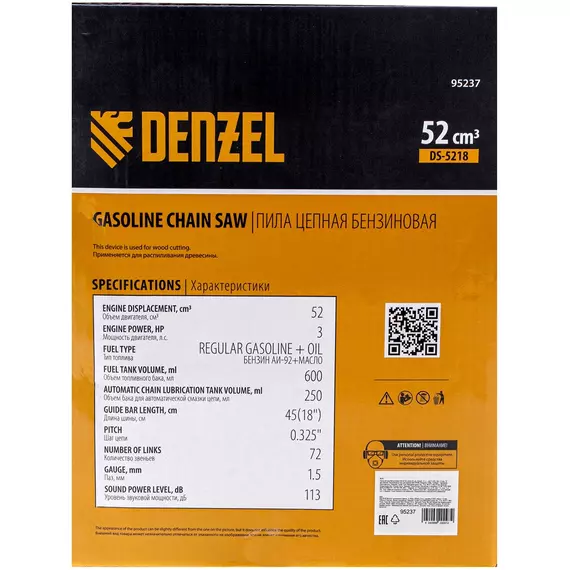 Бензопила Denzel DS-5218 2207Вт, 3л.с., дл.шины 18" (45cm) [95237]