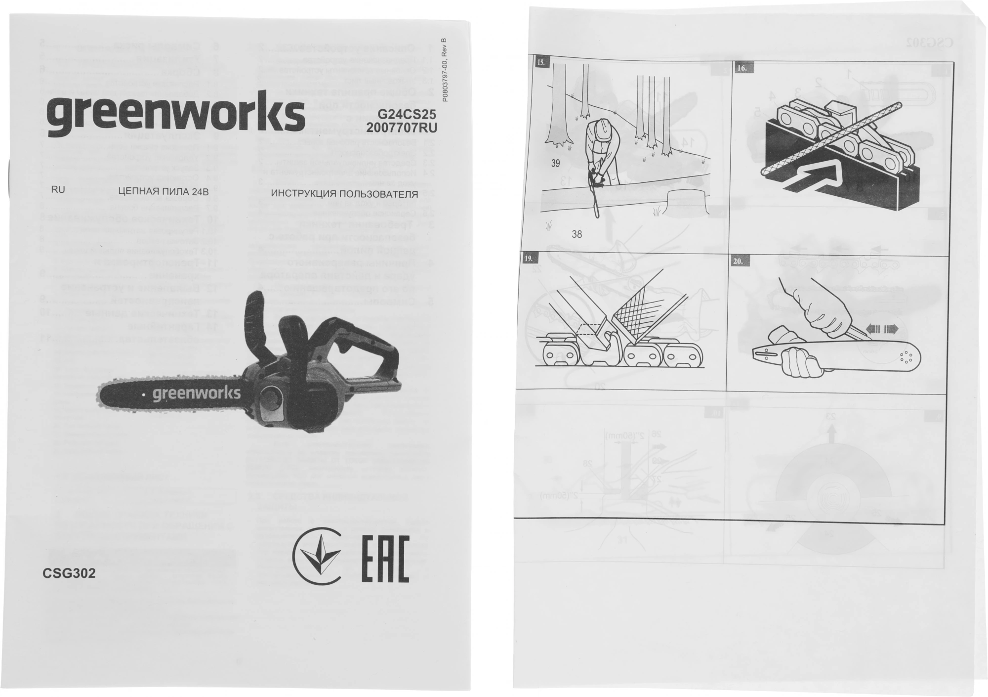 Цепная пила Greenworks G24CS25K4 аккум. дл.шины 10" (25cm), 1 аккум. 4Ач, ЗУ [2007707UB]
