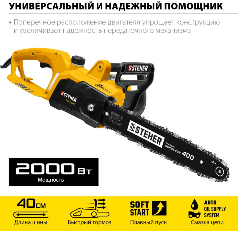 Пила цепная электрическая STEHER ES-2040 2000 Вт, 40 см шина