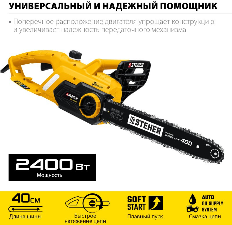 Пила цепная электрическая STEHER ES-2440 2400 Вт, 40 см шина