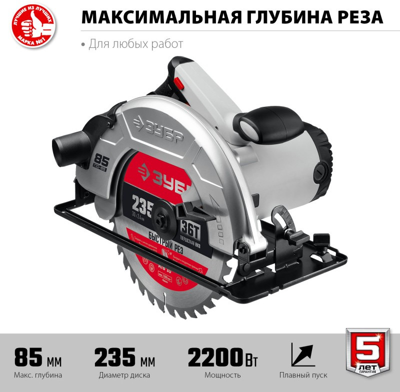 Пила дисковая Зубр ПД-85 90°-85 мм, диск 235 мм, 2200 Вт