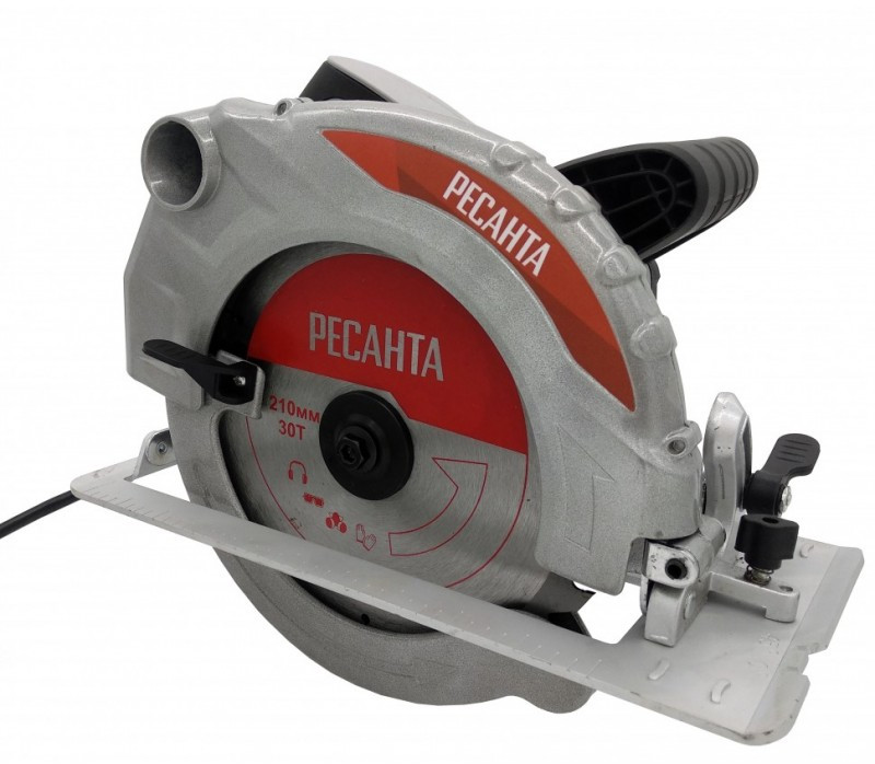 - Пила дисковая (циркулярная) Ресанта– ручной электроинструмент для прямолинейного распила дерева, а при использовании специальных пильных дисков можно качественно и быстро раскраивать плотные листовые материалы (ламинат, бакелитовую или обычную фанеру), цветные металлы, пластик. Дисковые пилы относятся к технике с приводом от электрического двигателя. Двигатель через редуктор передает крутящий момент на пильный диск
