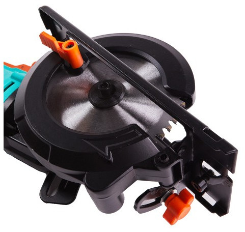 - Безопасный сдвигающийся кожух и бесступенчатая регулировка глубины пропила с удобной шкалой и фиксацией без ключа облегчает работу оператора
