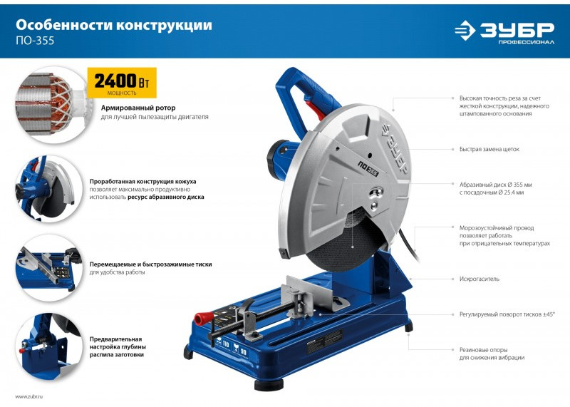 ПО-355 это профессиональная отрезная пила для продуктивной резки различных видов металла абразивными дисками.