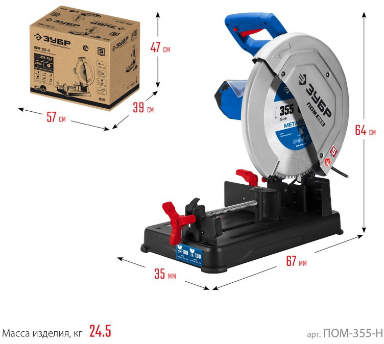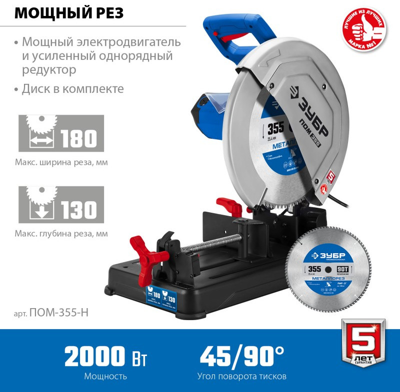 Монтажная пила (отрезная) Зубр Профессионал ПОМ-355-Н 355 мм, 2000 Вт, с пильным диском