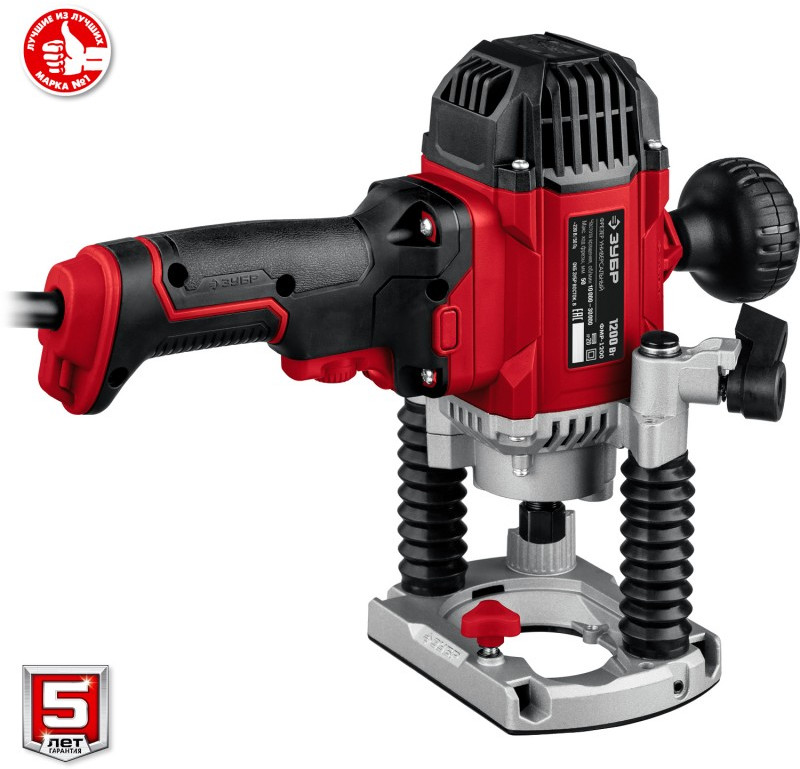 - Фрезер ЗУБР – многофункциональное изделие для различных видов фрезерования (продольного, фигурного, по шаблону, по радиусу). Компактный и производительный инструмент с удобной эргономикой. Повышенная точность оперирования позволяет выполнять наиболее тонкие работы. Яркая подсветка места фрезерования способствует удобству в работе