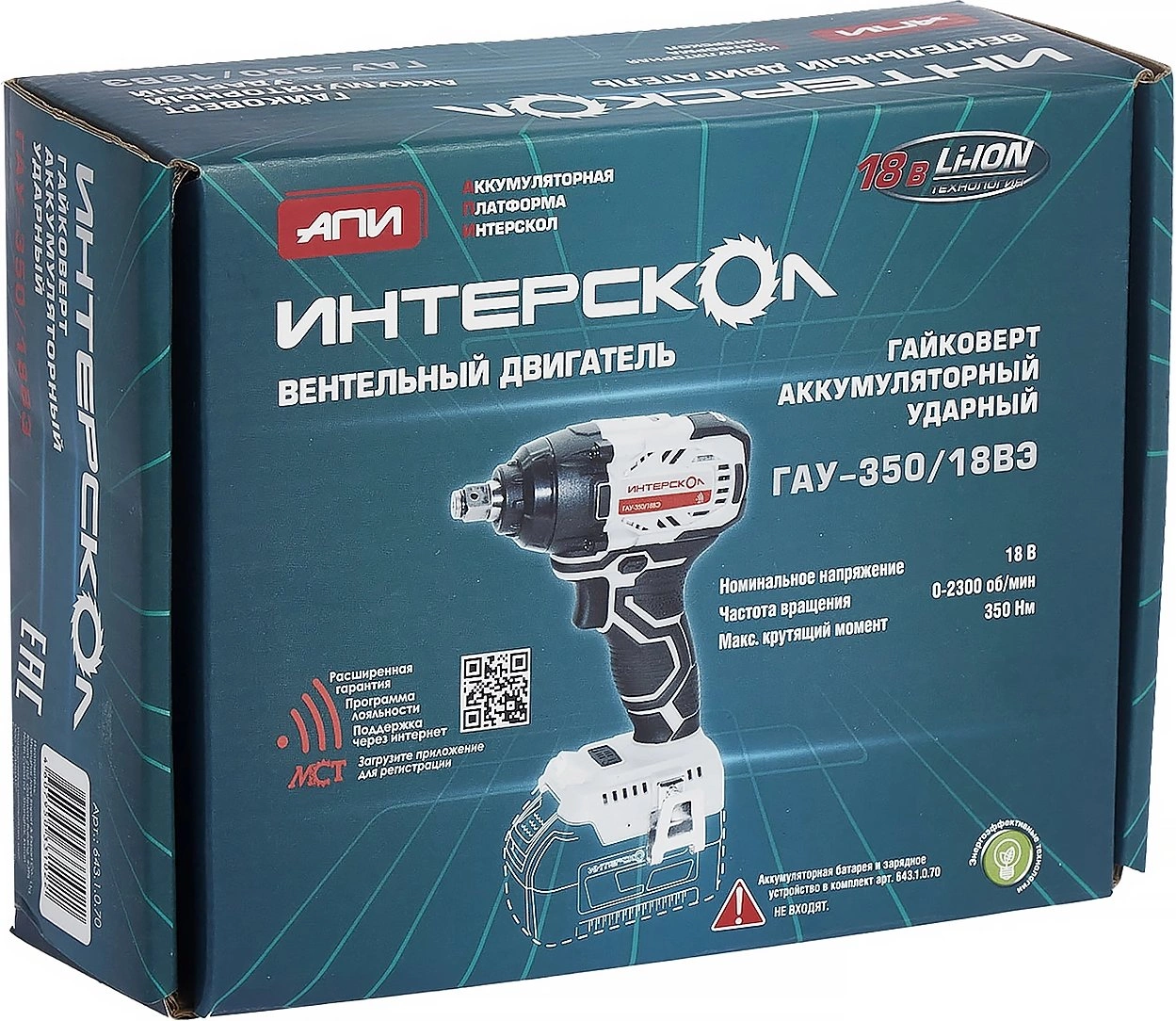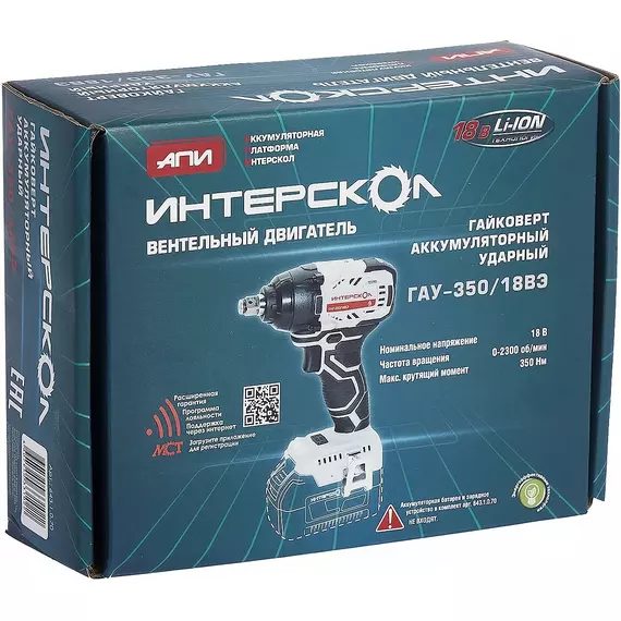 Аккумуляторный бесщет.ударный гайковерт Интерскол ГАУ-350/18ВЭ Li-ion АПИ картон, без аккум. и ЗУ [643.1.0.70]